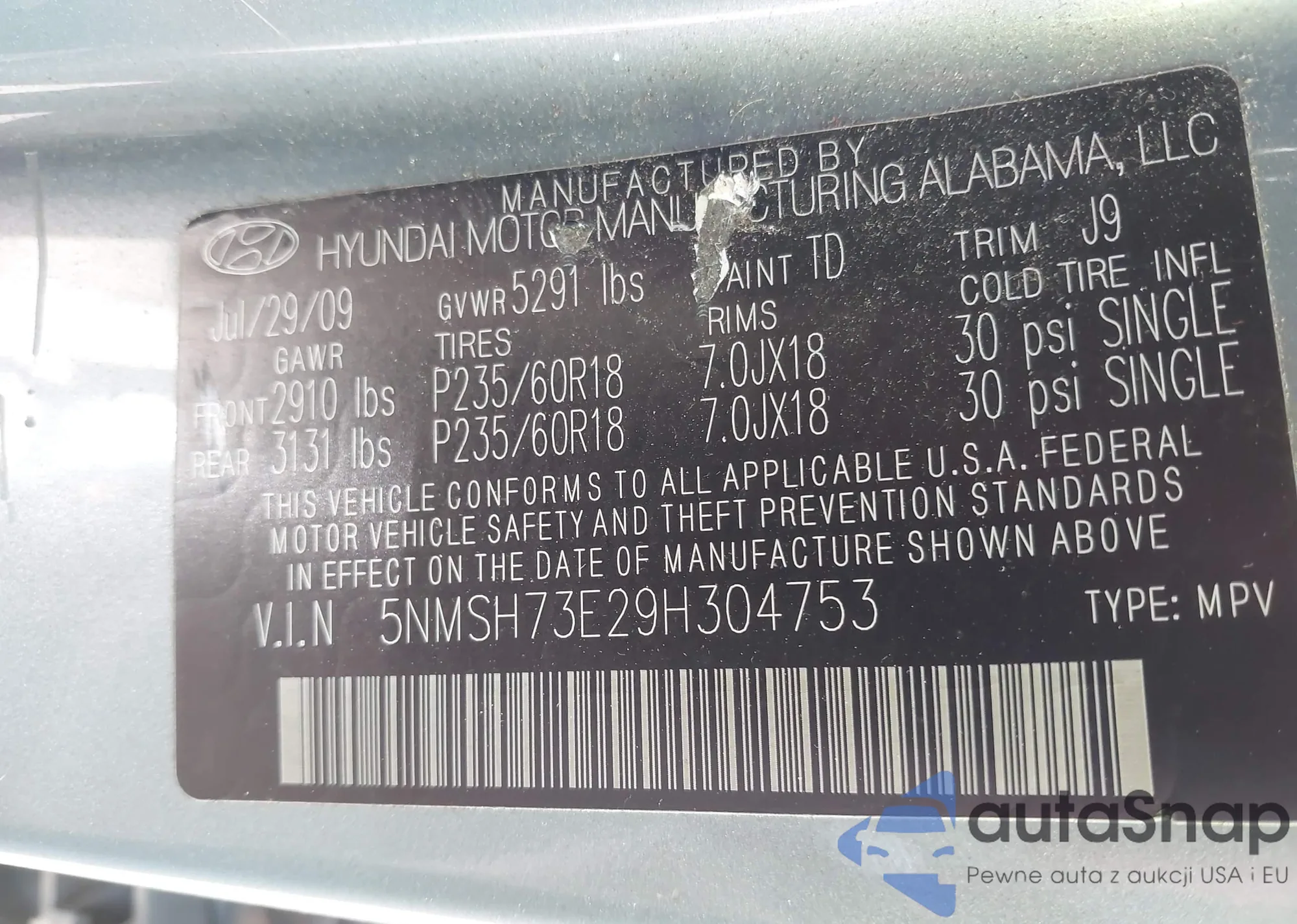 • VIN 5NMSH73E29H304753