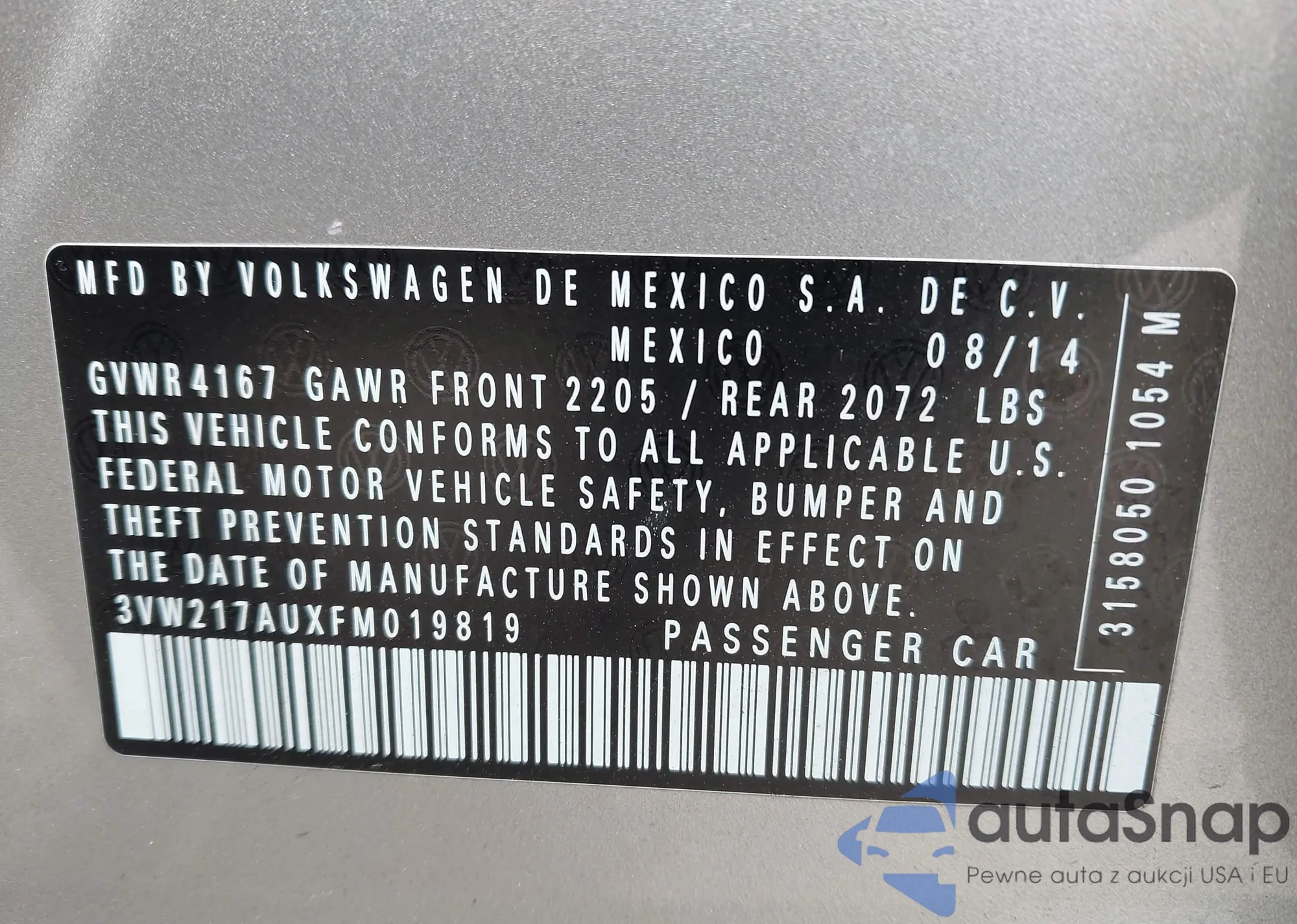 LOT: 43245471 VIN: 3VW217AUXFM019819