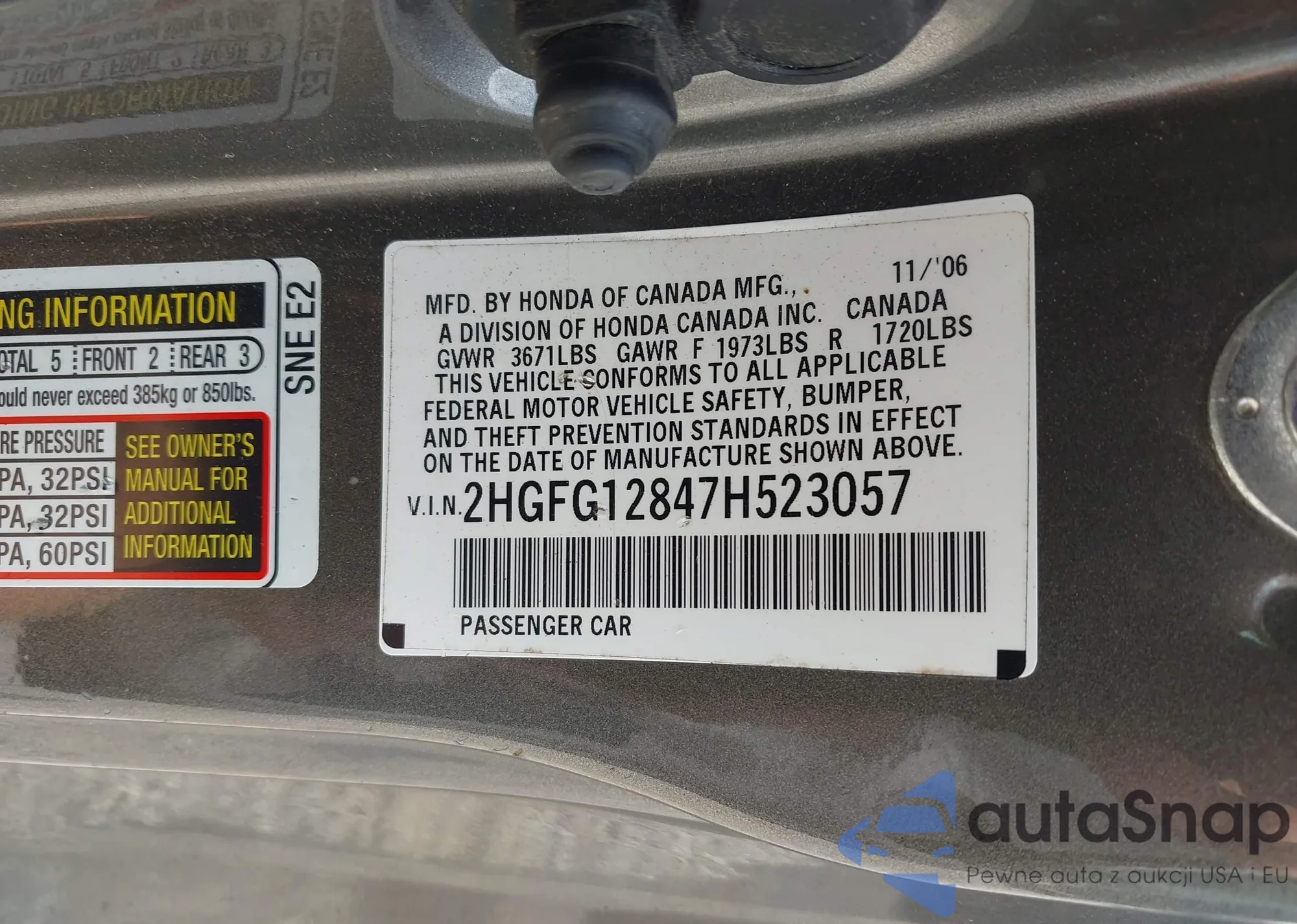LOT: 43205643 VIN: 2HKYF18435H543559