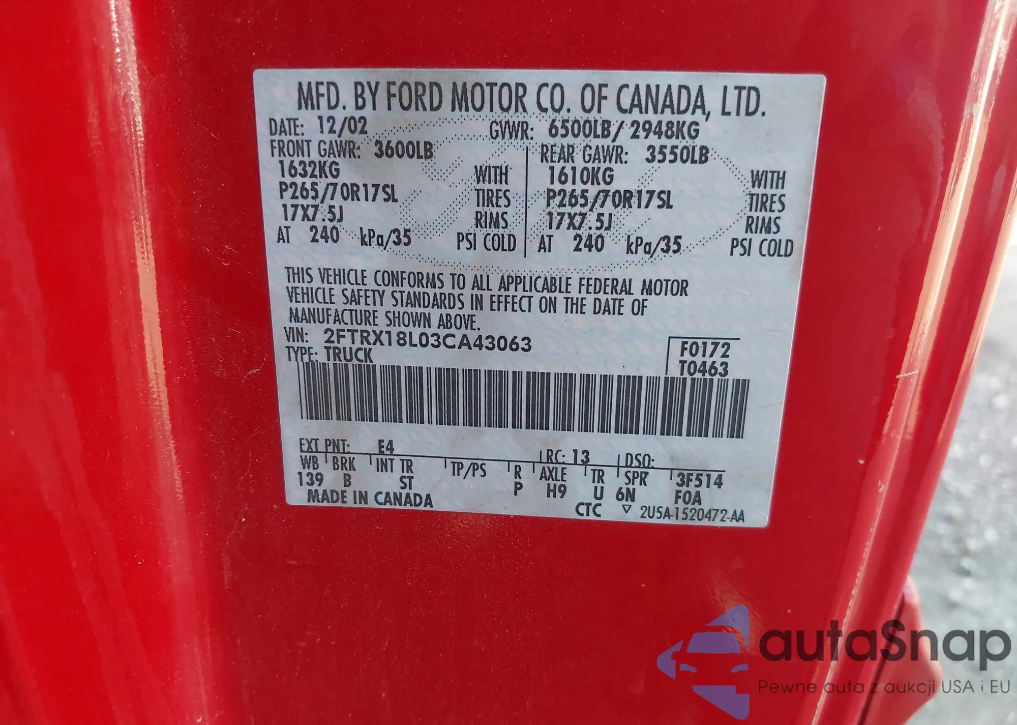 • VIN 2FTRX18L03CA43063