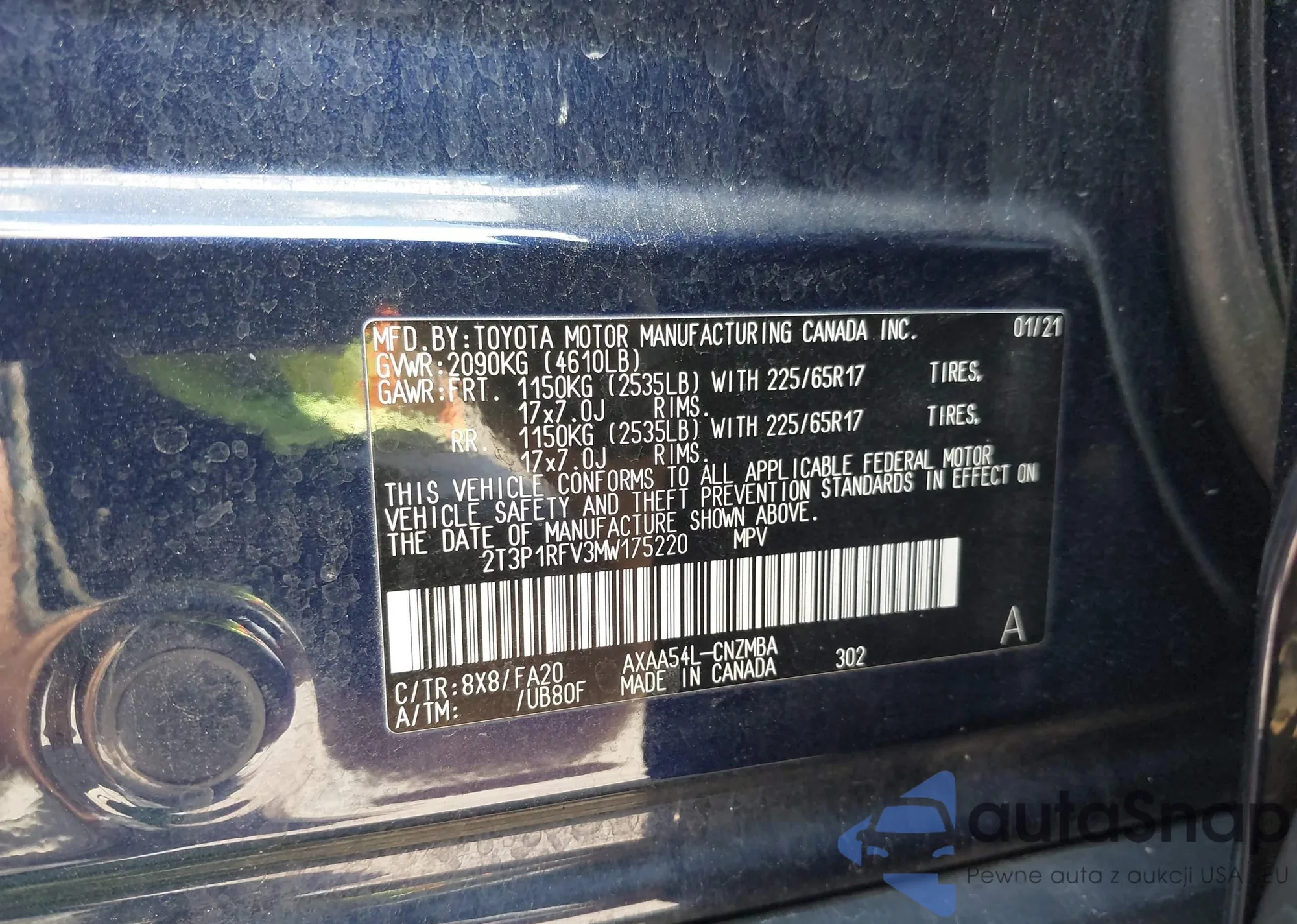LOT: 43065796 VIN: 2T3P1RFV3MW175220