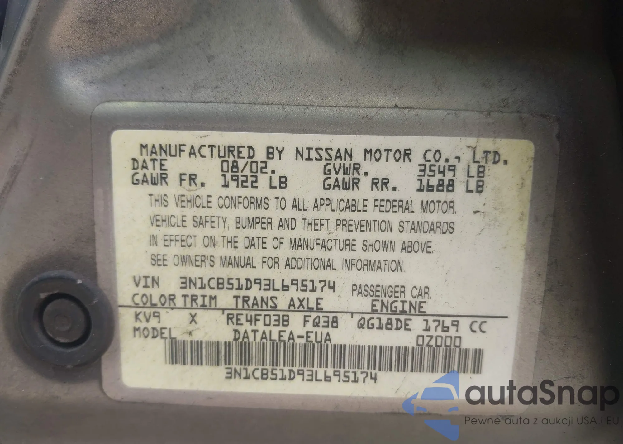 • VIN 3N1CB51D93L695174