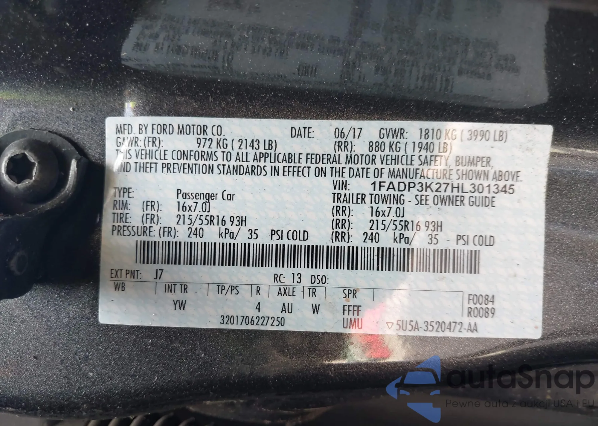 • VIN 1FADP3K27HL301345