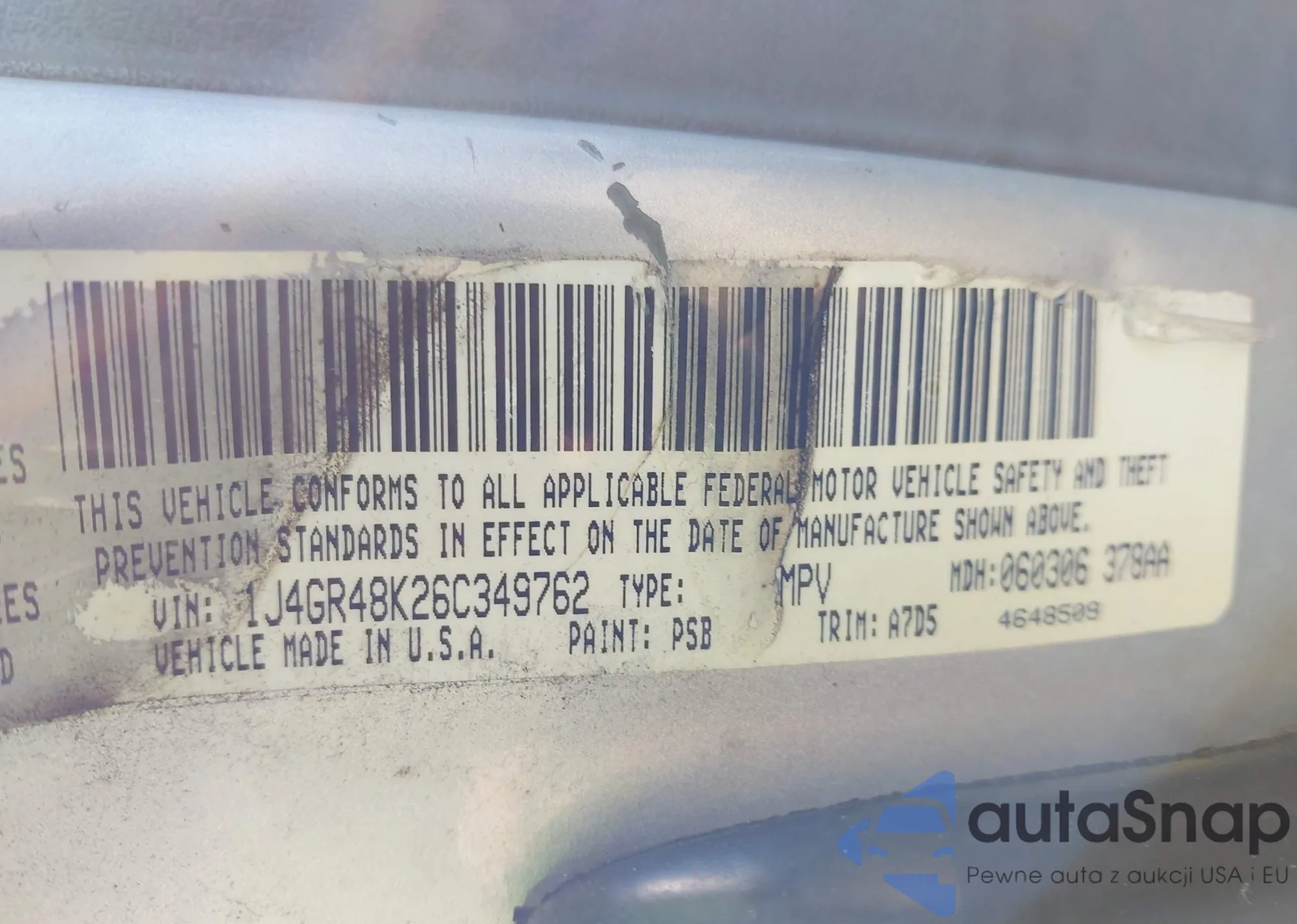 LOT: 42934571 VIN: WBAKB8C55CC965123