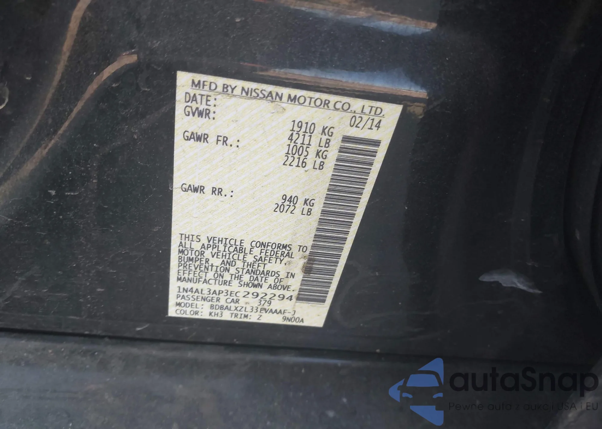 LOT: 42571753 VIN: 1N4AL3AP3EC292294
