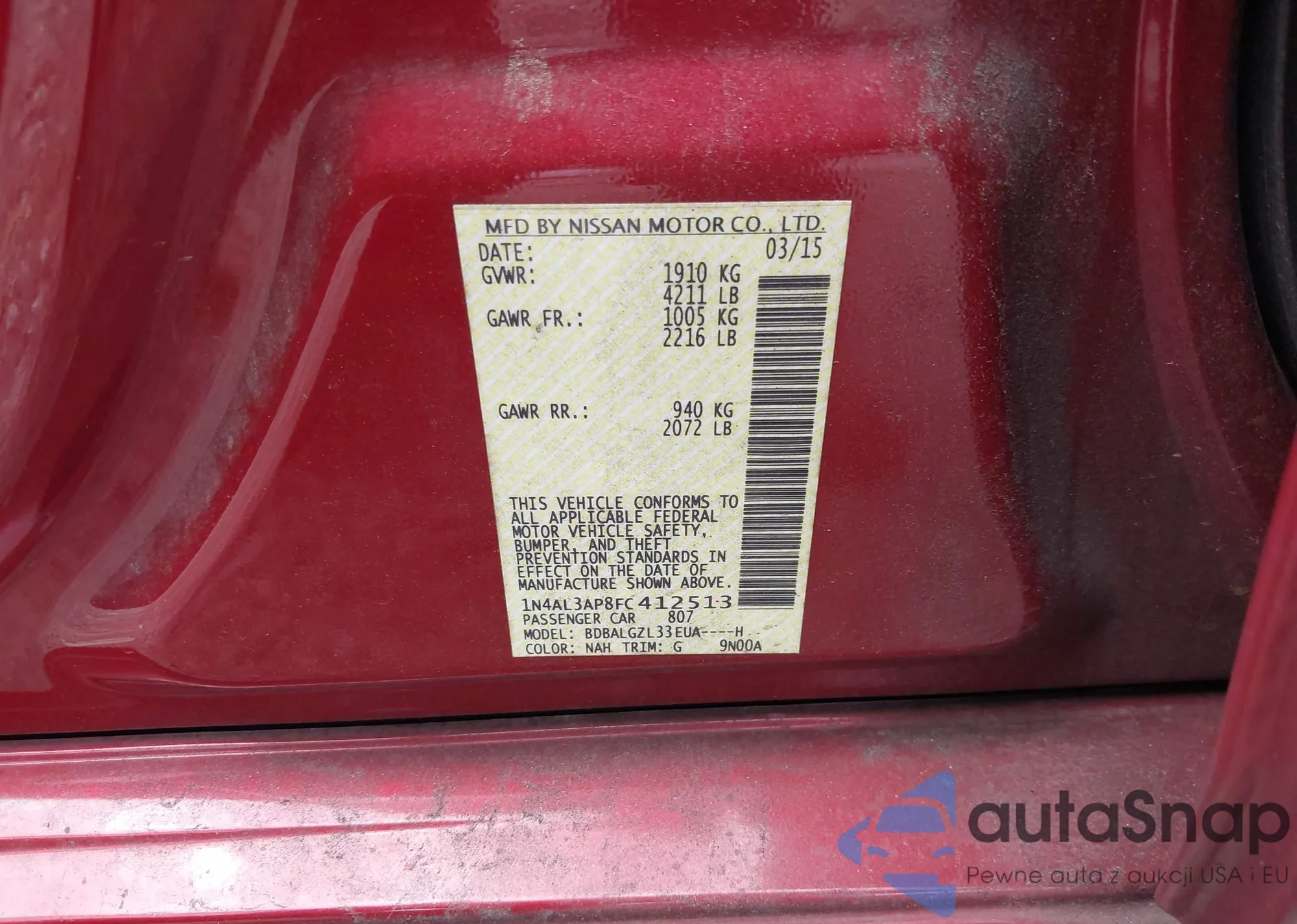 LOT: 43233884 VIN: KMHFG4JG7FA476513