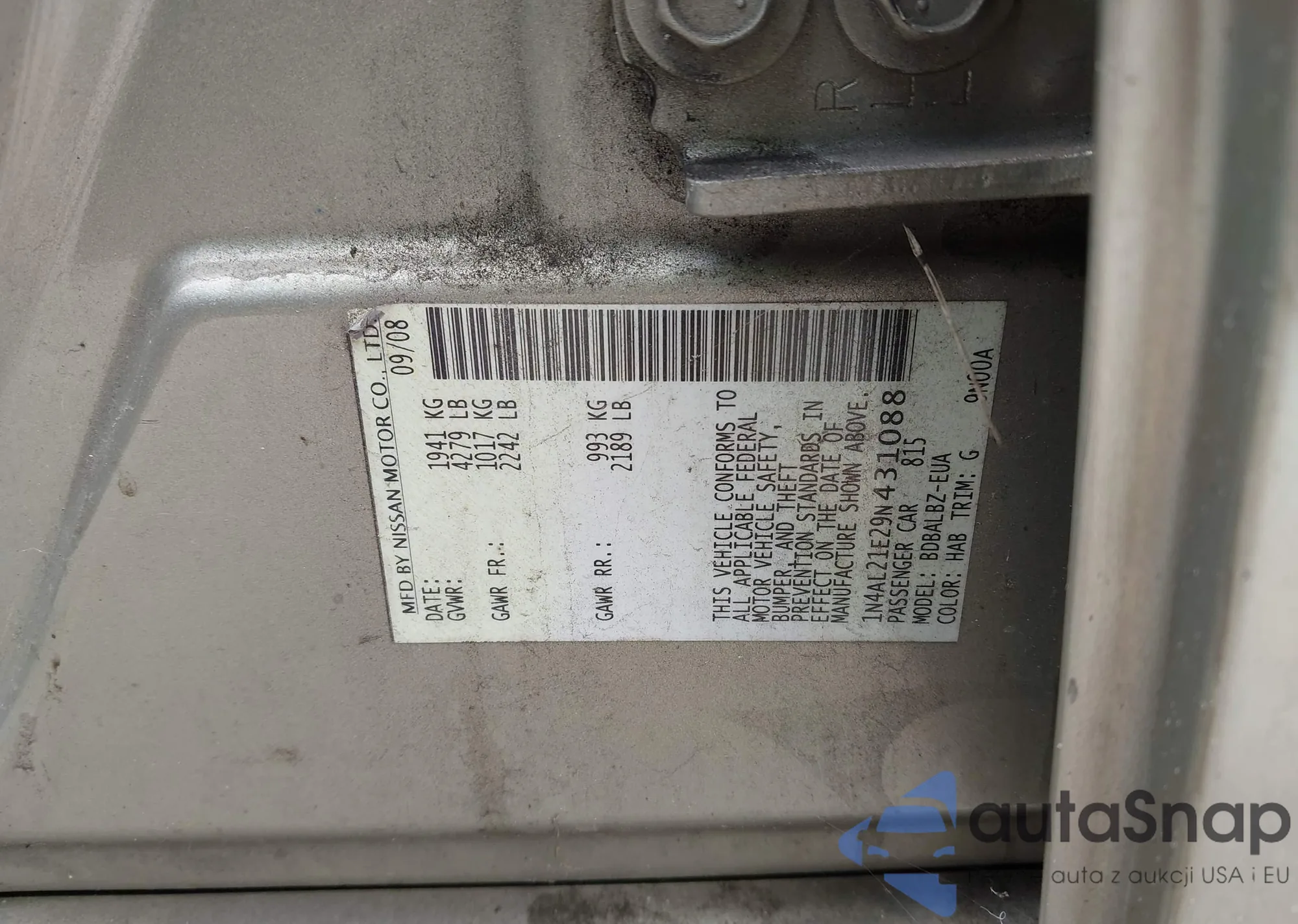 • VIN 4T1S11AK4PU143009