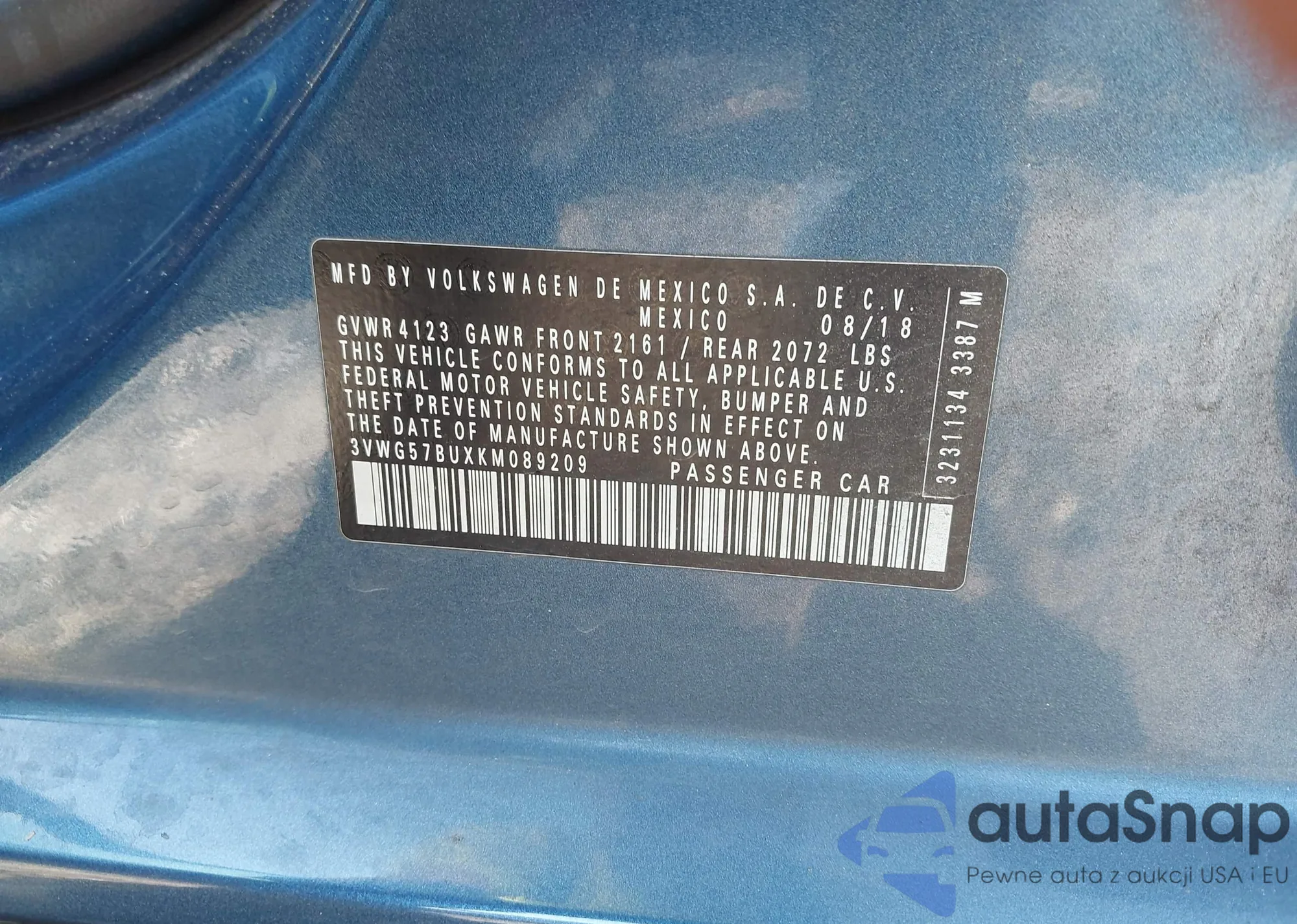 • VIN 3VWG57BUXKM089209