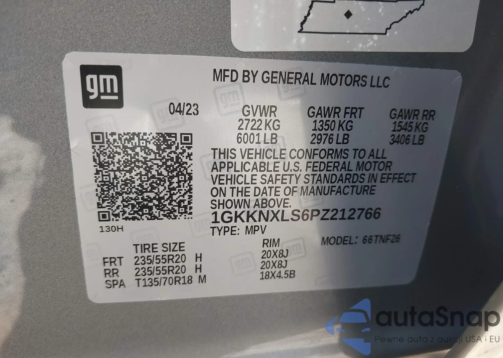LOT: 42136718 VIN: 1GKKNXLS6PZ212766