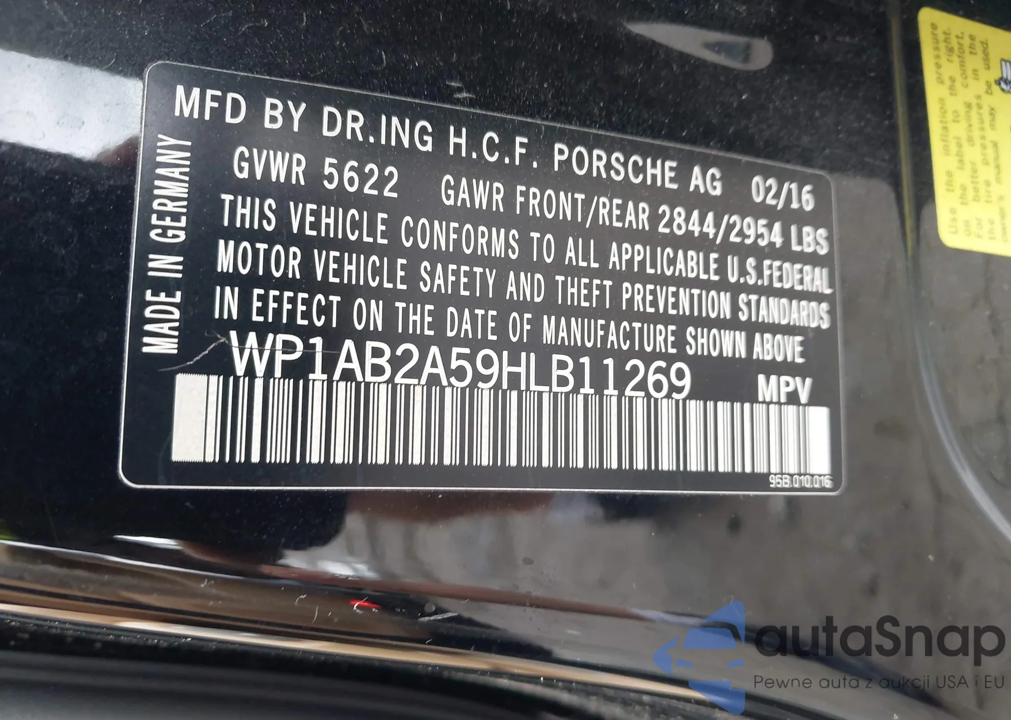 LOT: 42911924 VIN: WP1AB2A59HLB11269