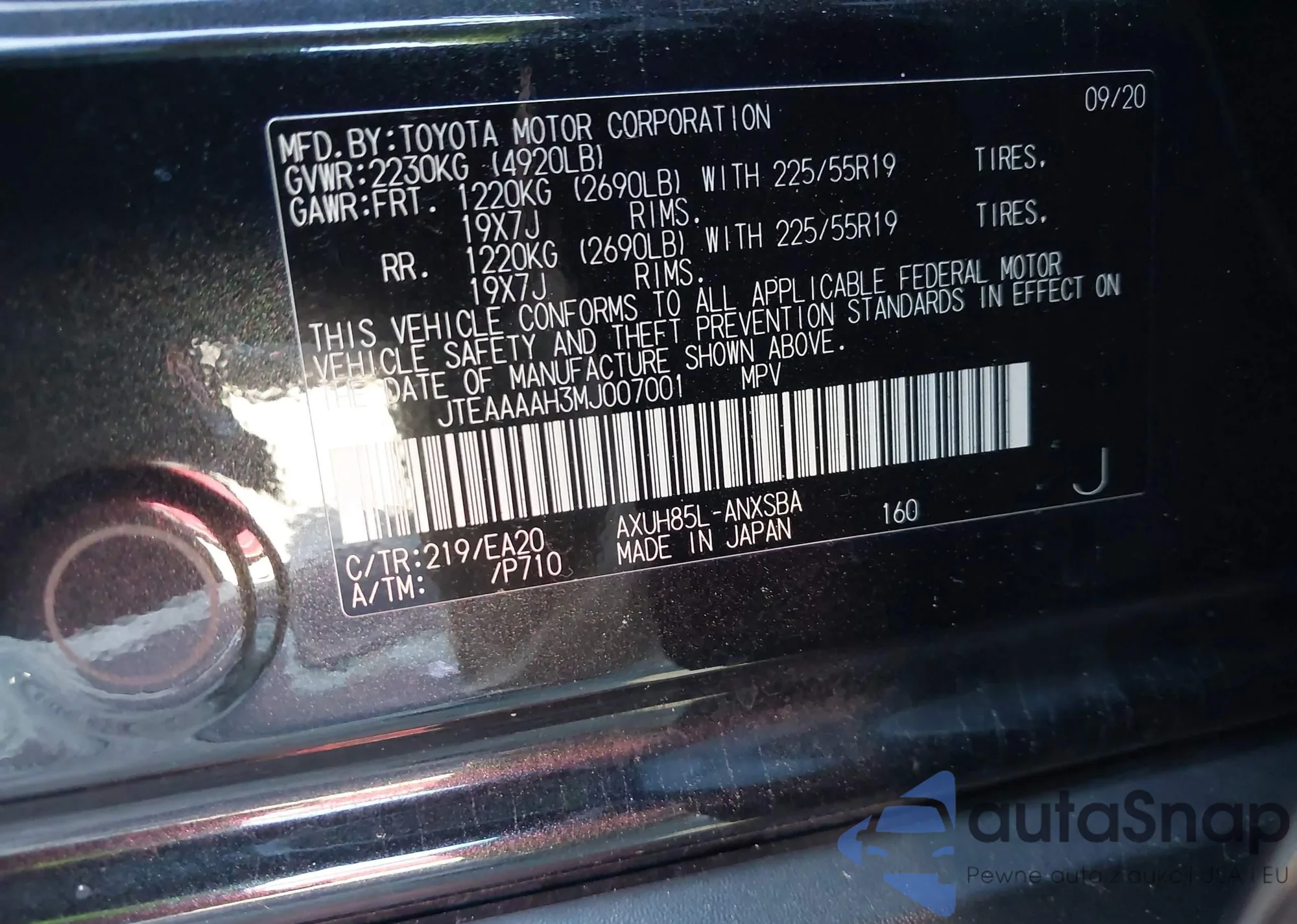 LOT: 43126903 VIN: JTEAAAAH3MJ007001