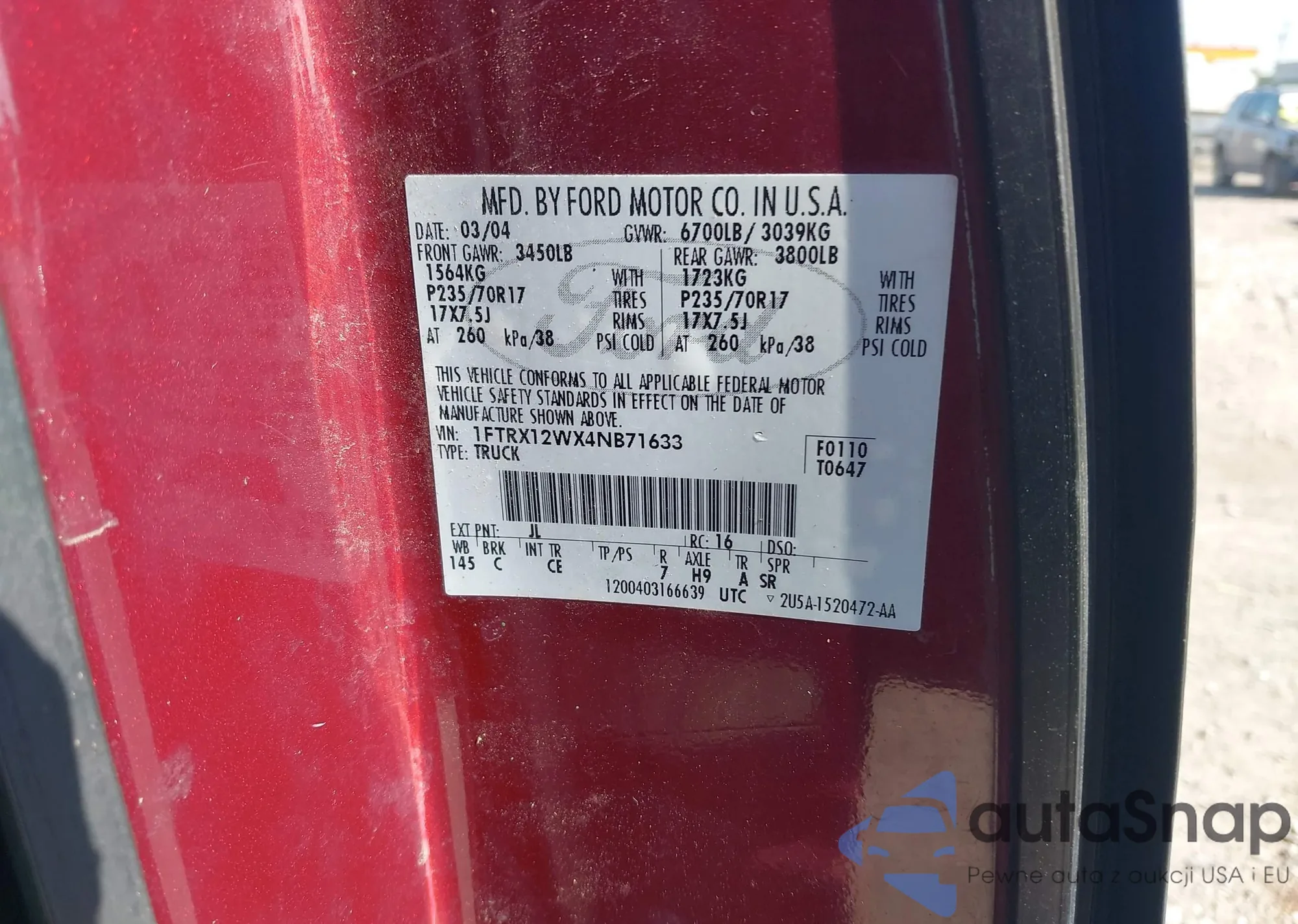 • VIN 1FTRX12WX4NB71633