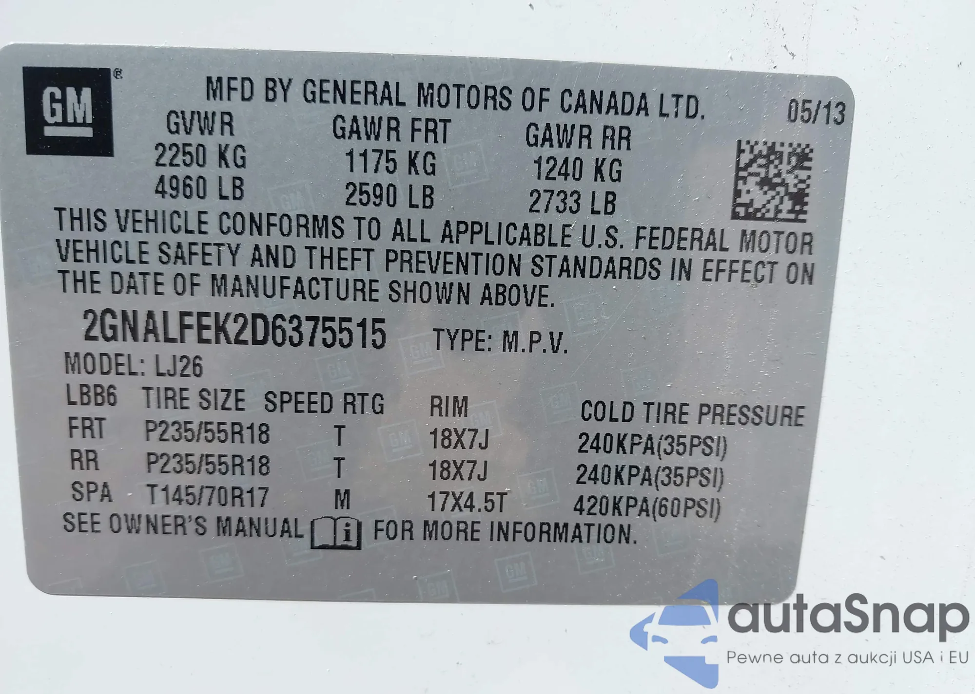 • VIN 2GNALFEK2D6375515