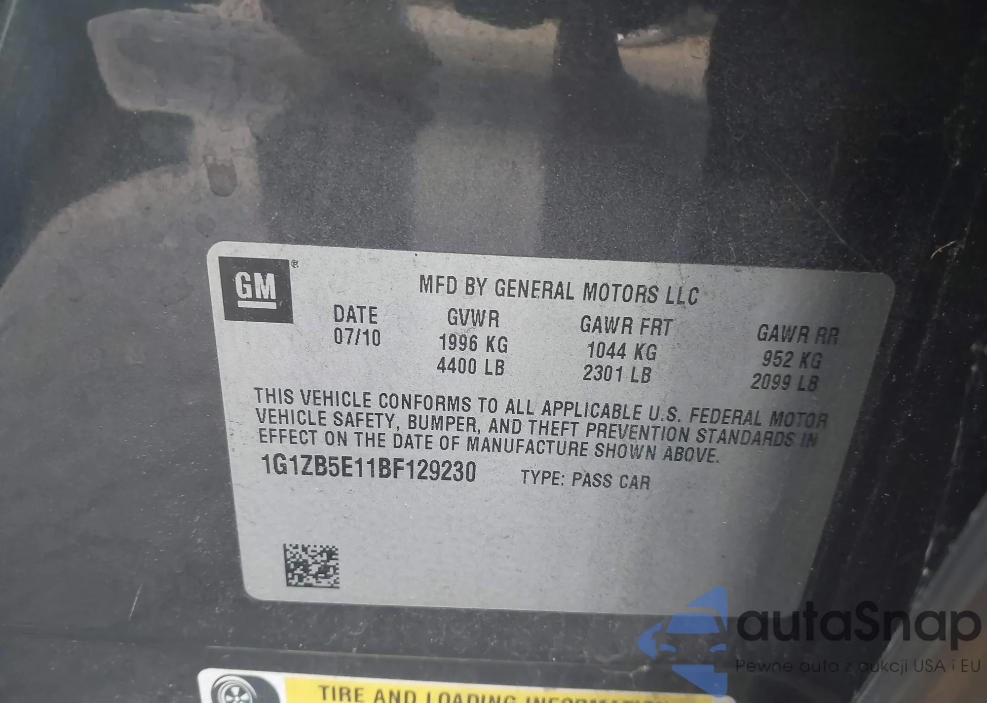 • VIN 1G1ZB5E11BF129230