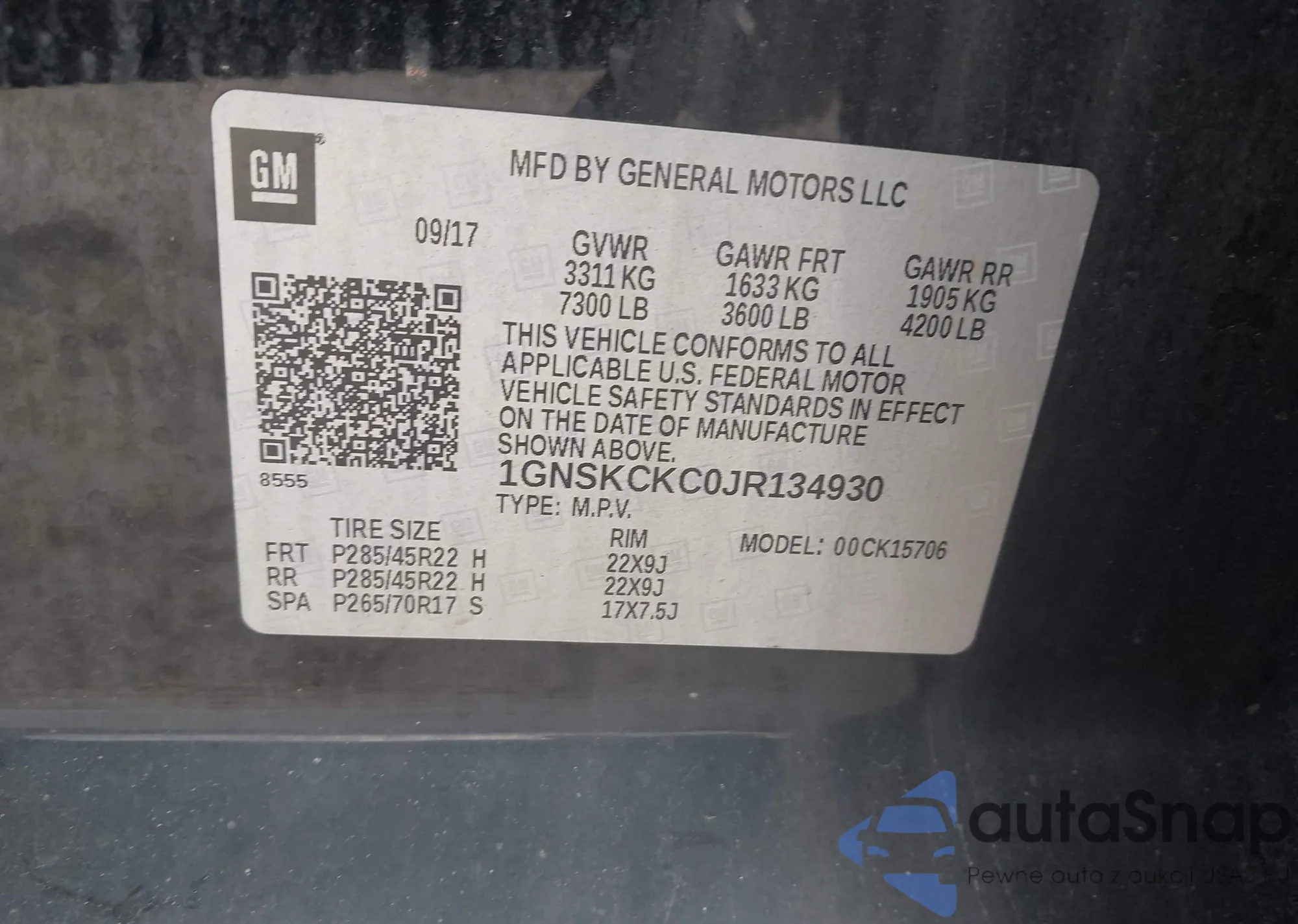 • VIN 1GNSKCKC0JR134930