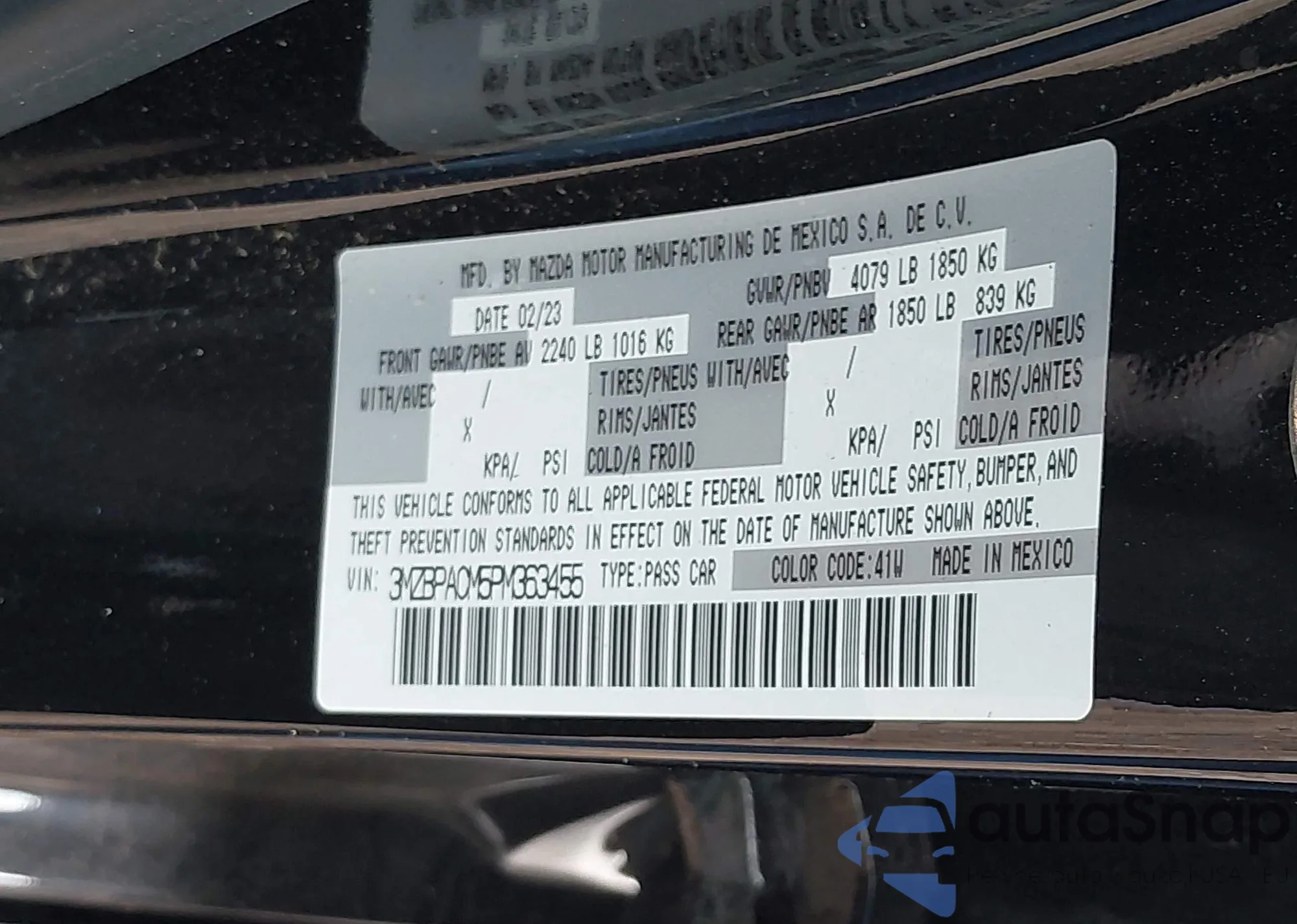 LOT: 43004126 VIN: 3MZBPACM5PM363455