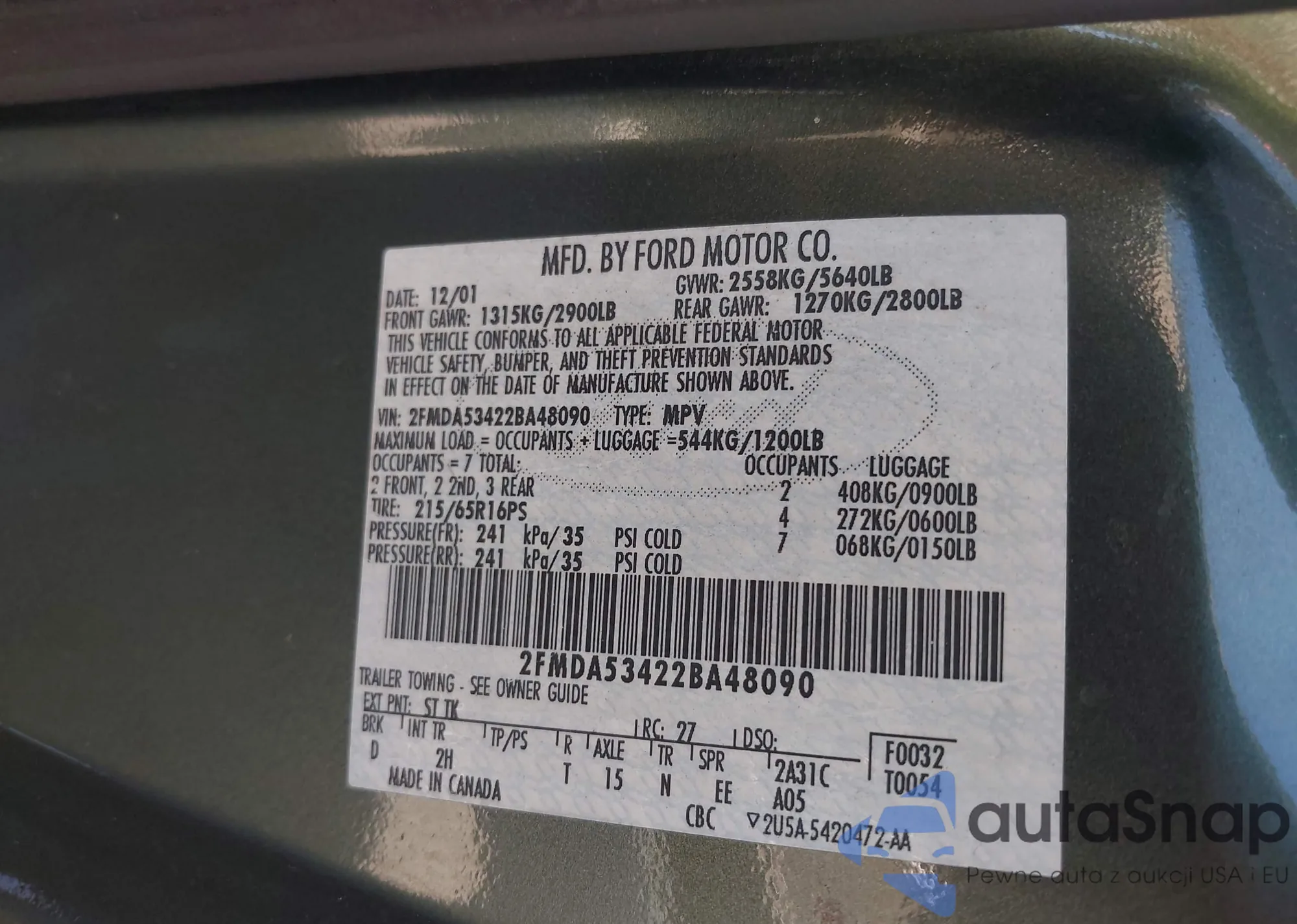 • VIN 2FMDA53422BA48090
