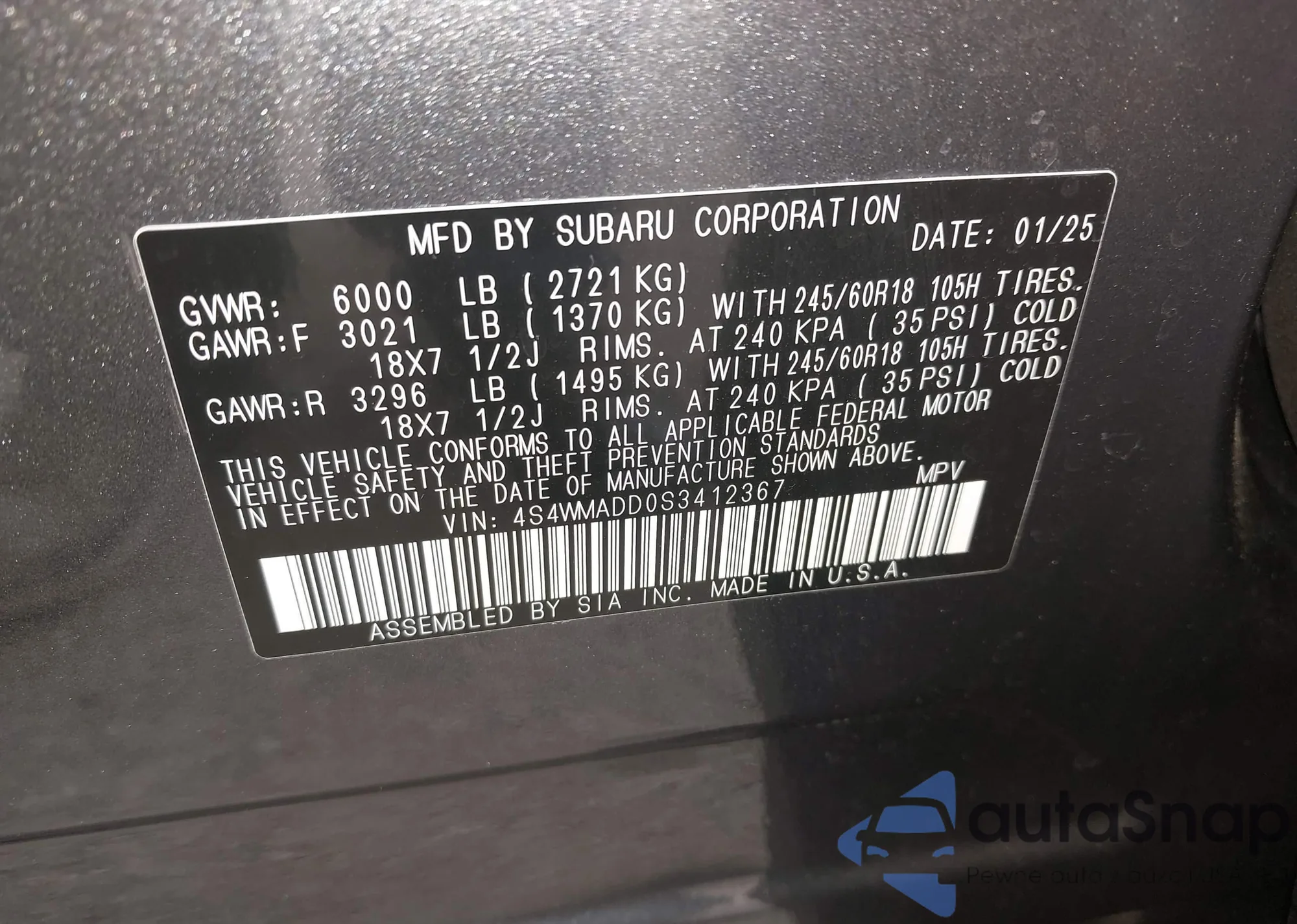 • VIN 4S4WMADD0S3412367