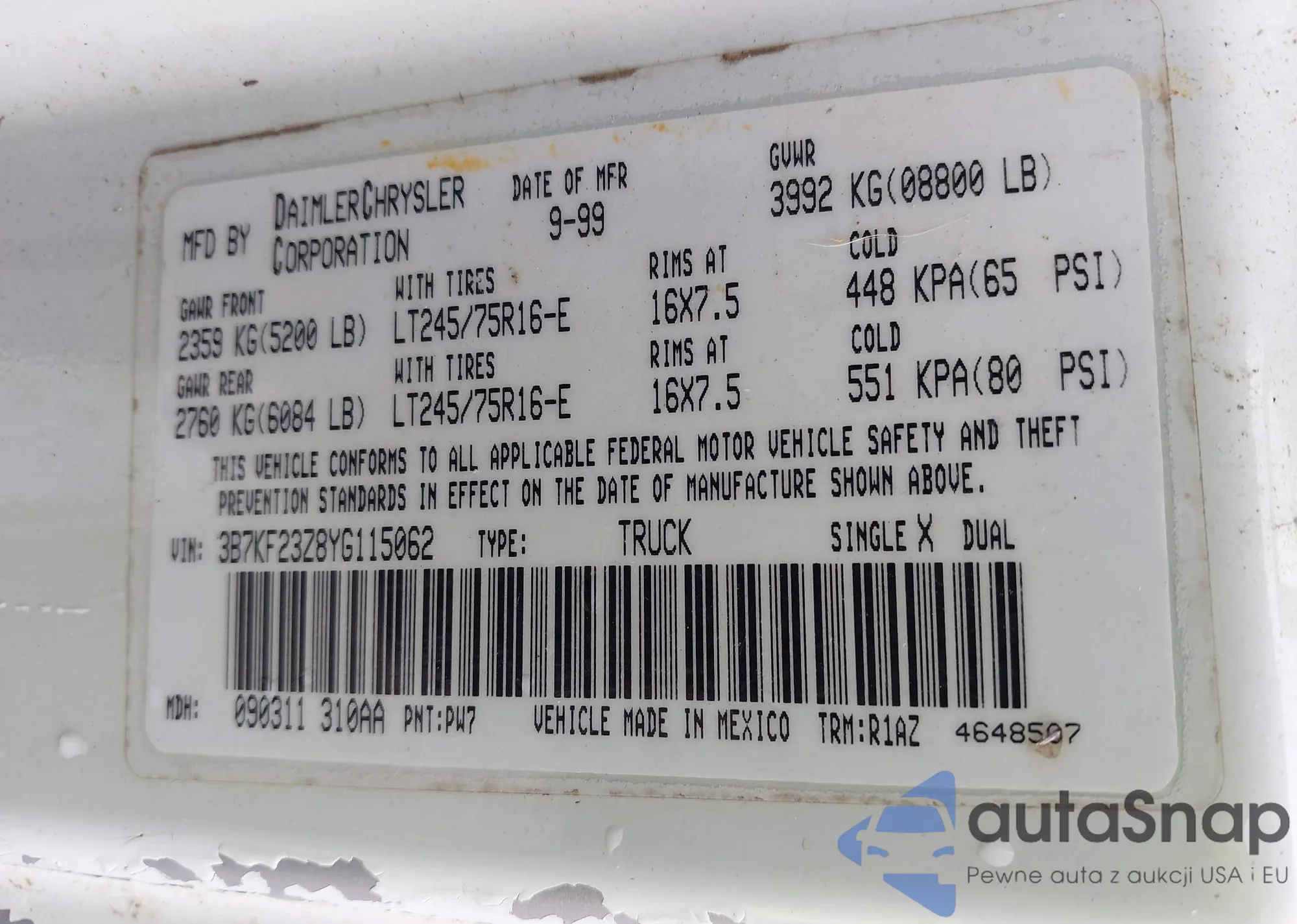 • VIN 1C4GJXAG4KW685538