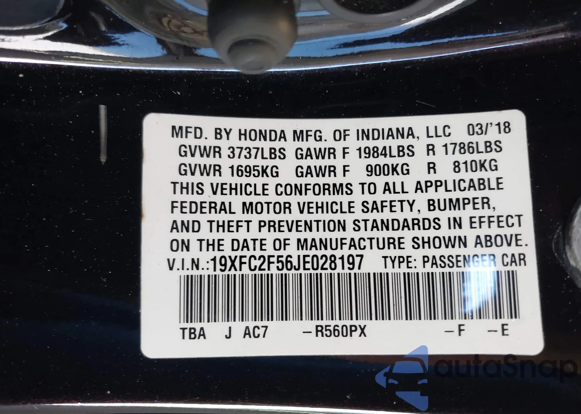 • VIN 19XFC2F56JE028197