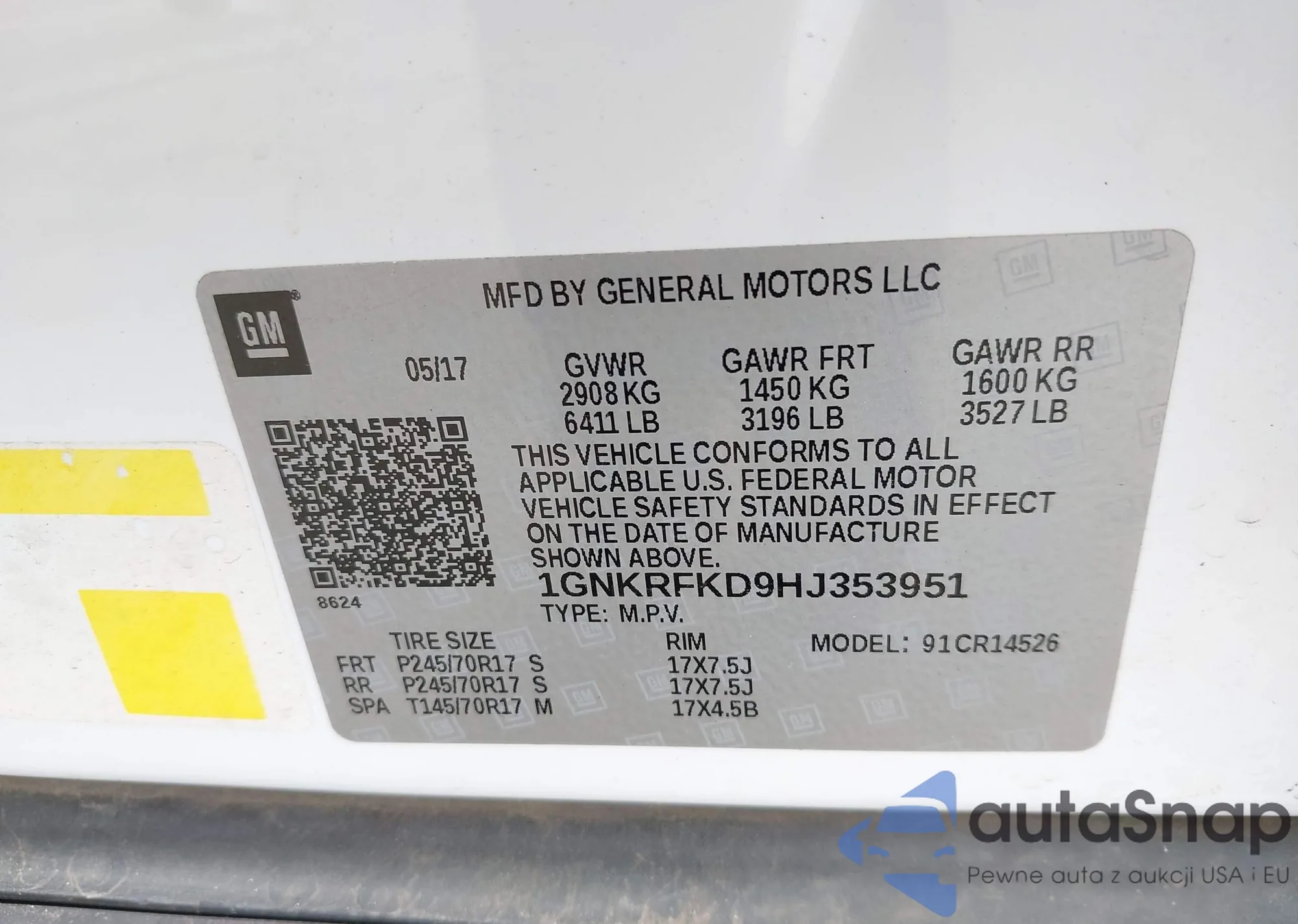 LOT: 42973188 VIN: 1GNKRFKD9HJ353951