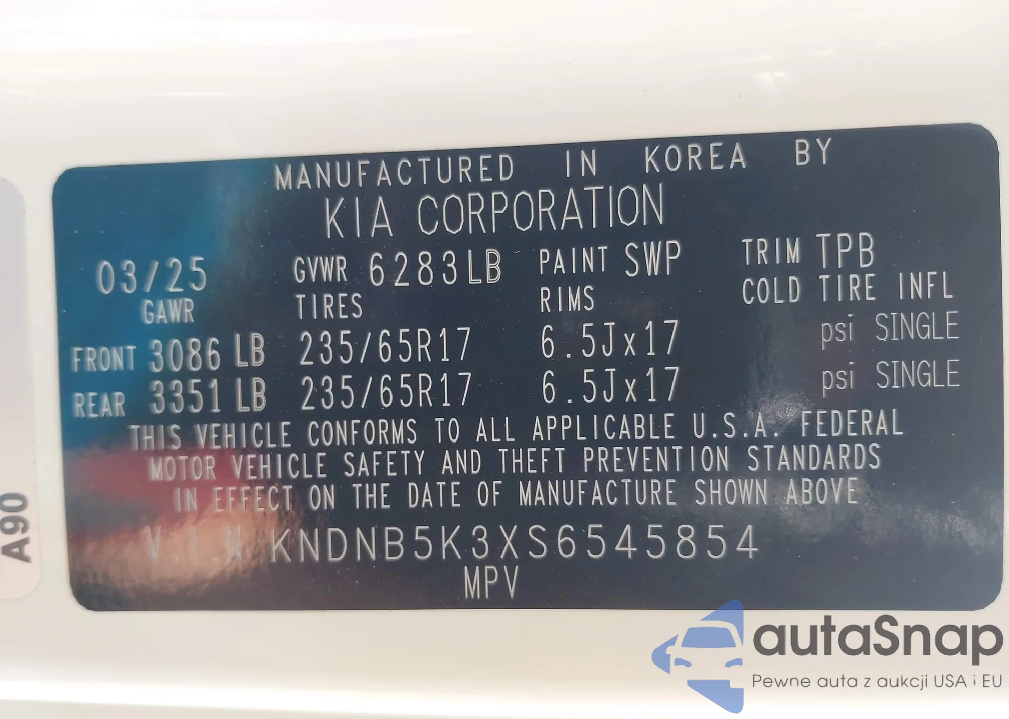 • VIN KNDNB5K3XS6545854