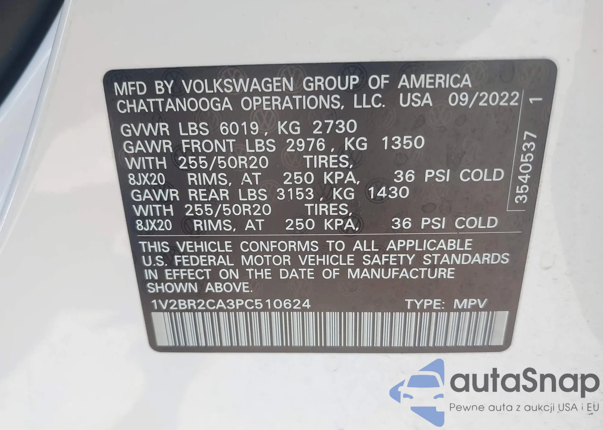 • VIN 1V2BR2CA3PC510624