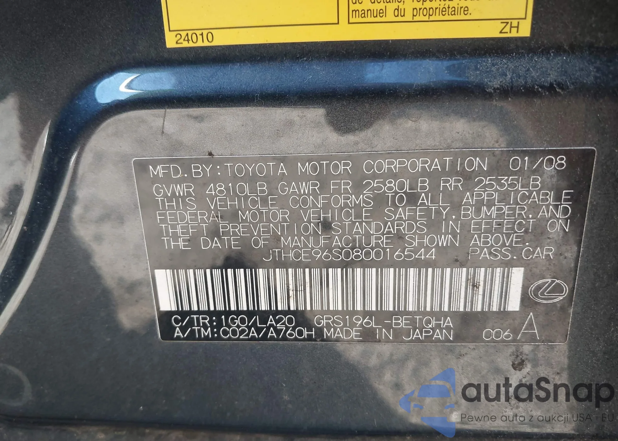 • VIN JTHCE96S080016544