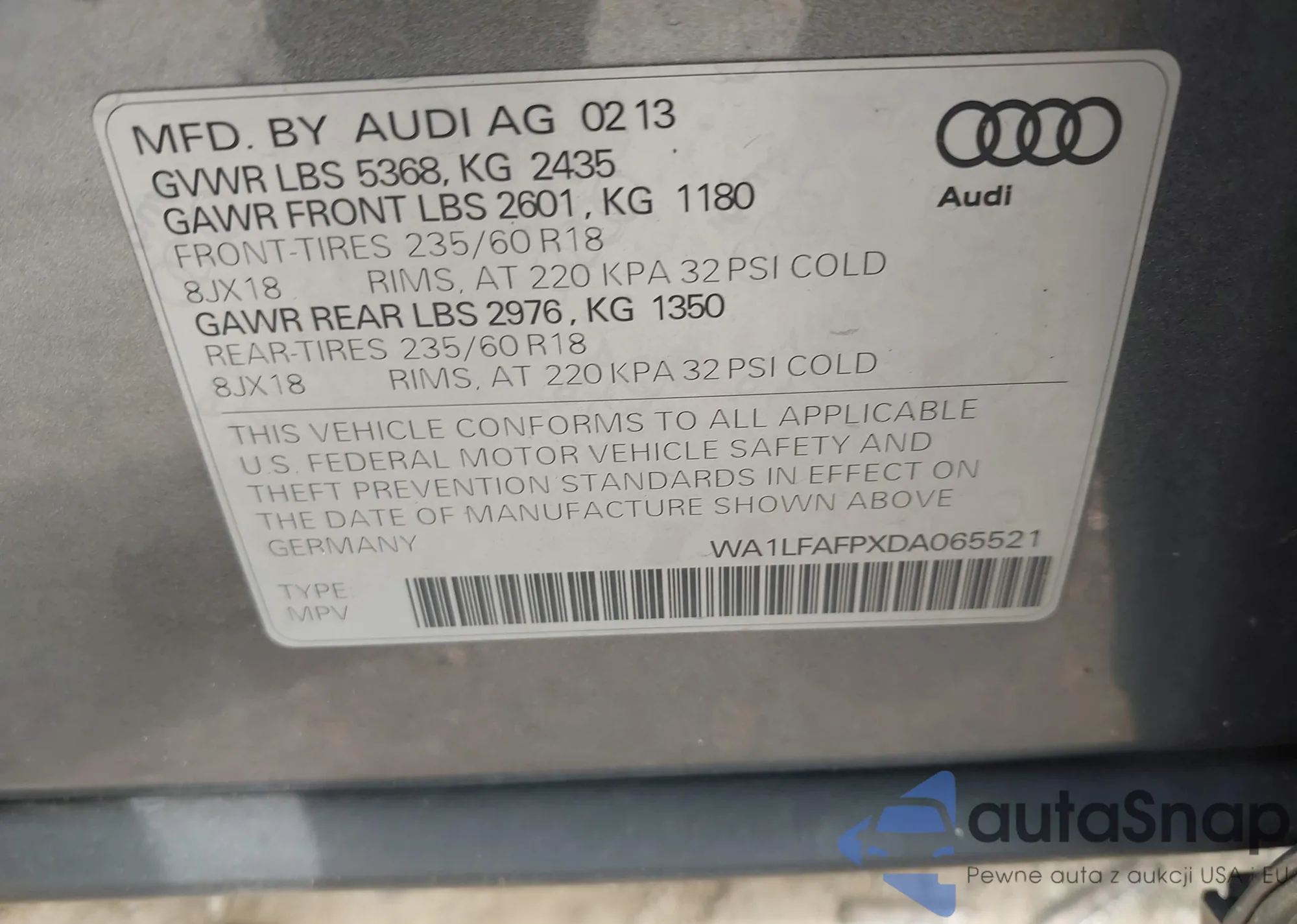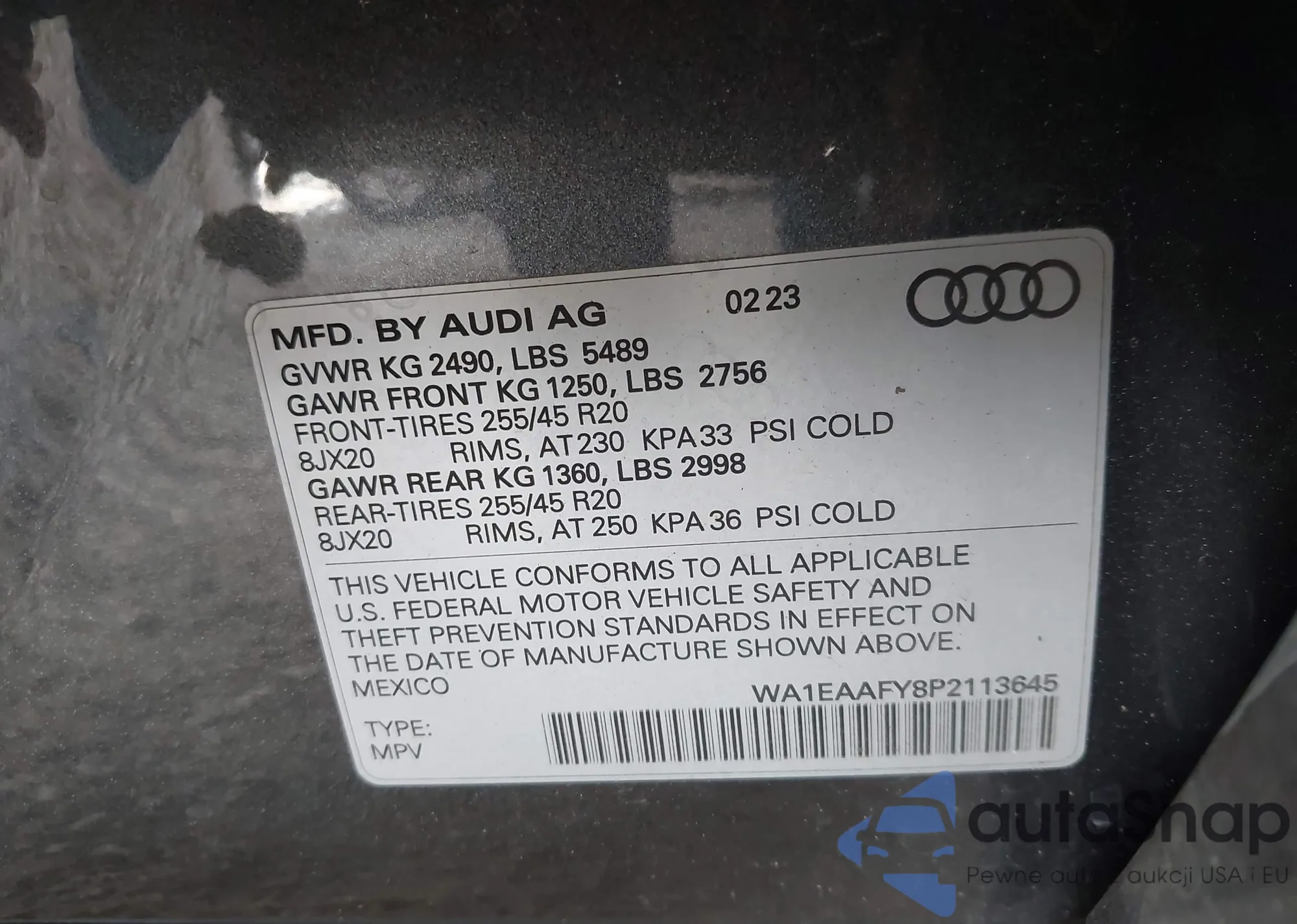LOT: 42684481 VIN: WA1EAAFY8P2113645