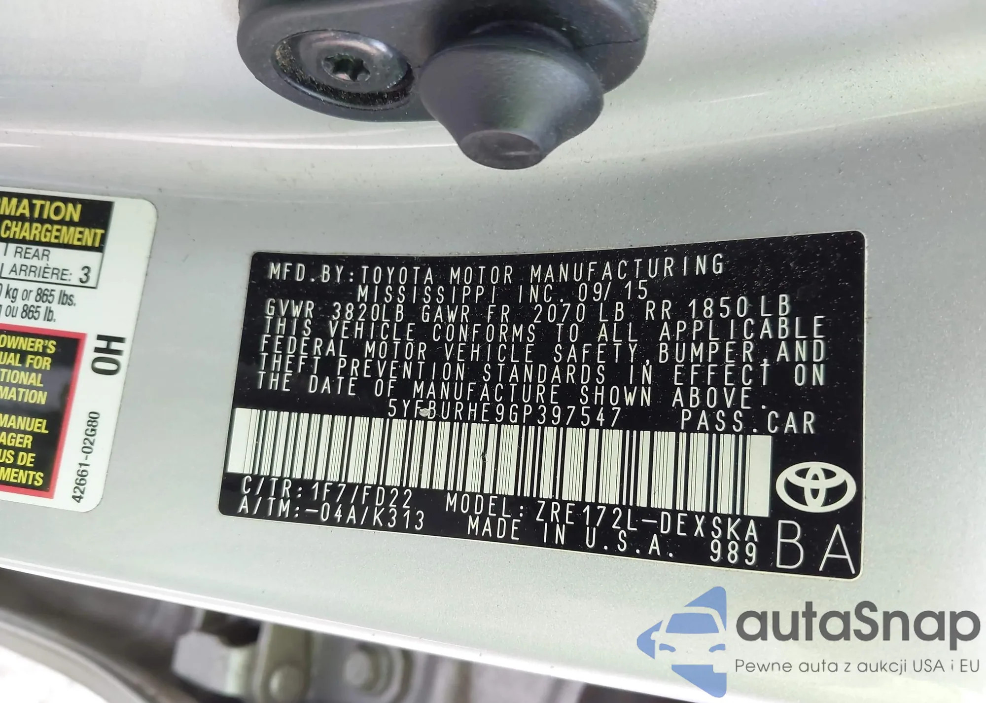 • VIN 2T1BU4EE9CC792328