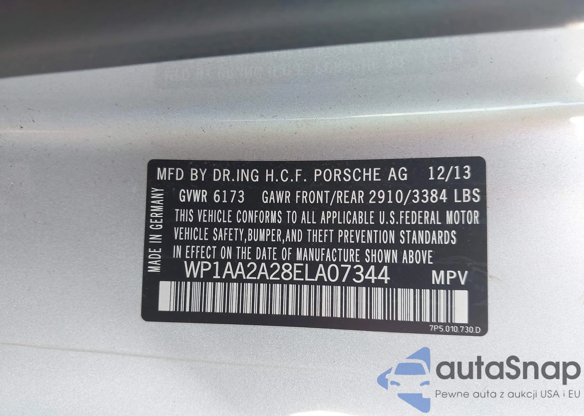 LOT: 42786652 VIN: WP1AA2A28ELA07344