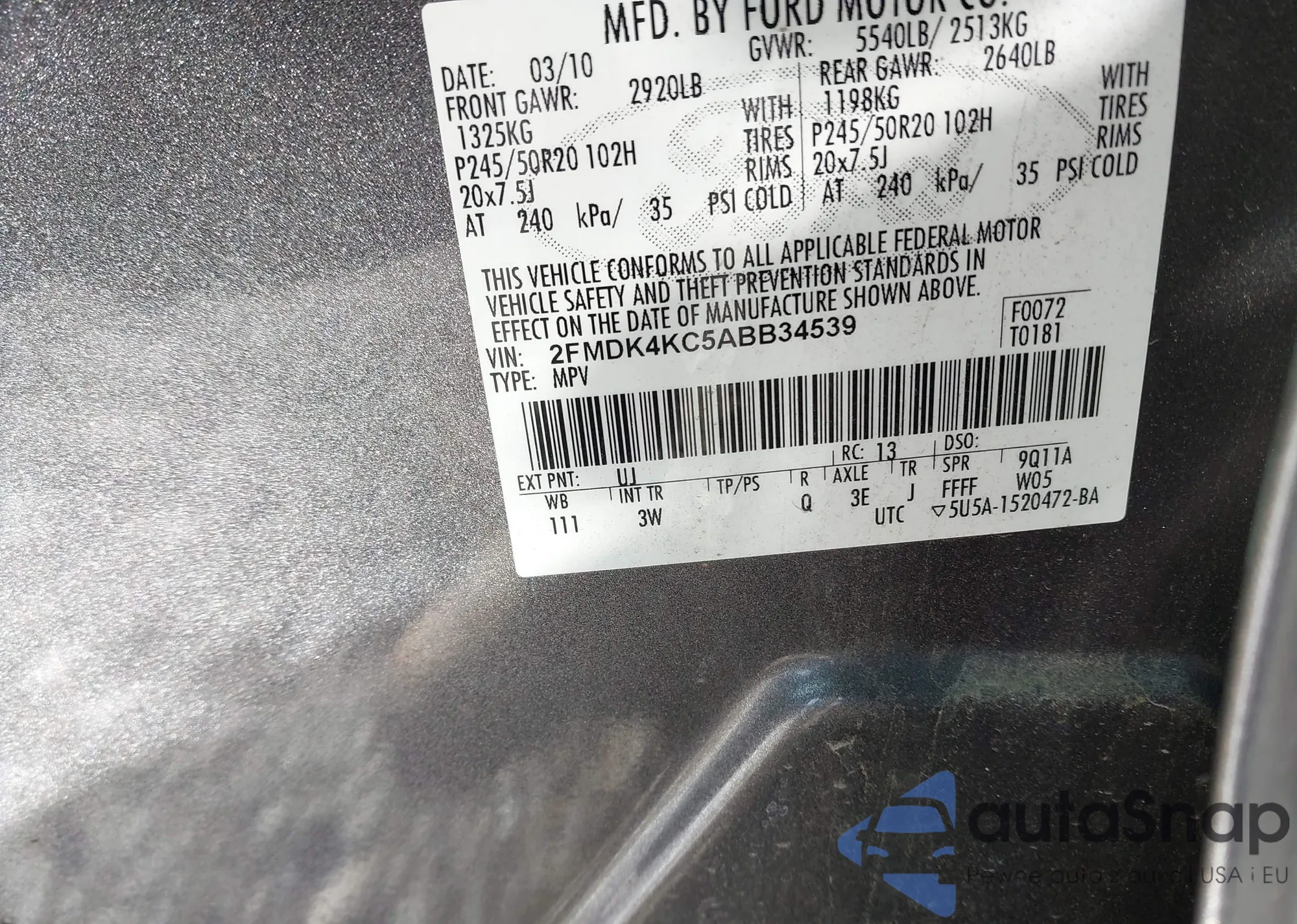 • VIN 2FMDK4KC5ABB34539