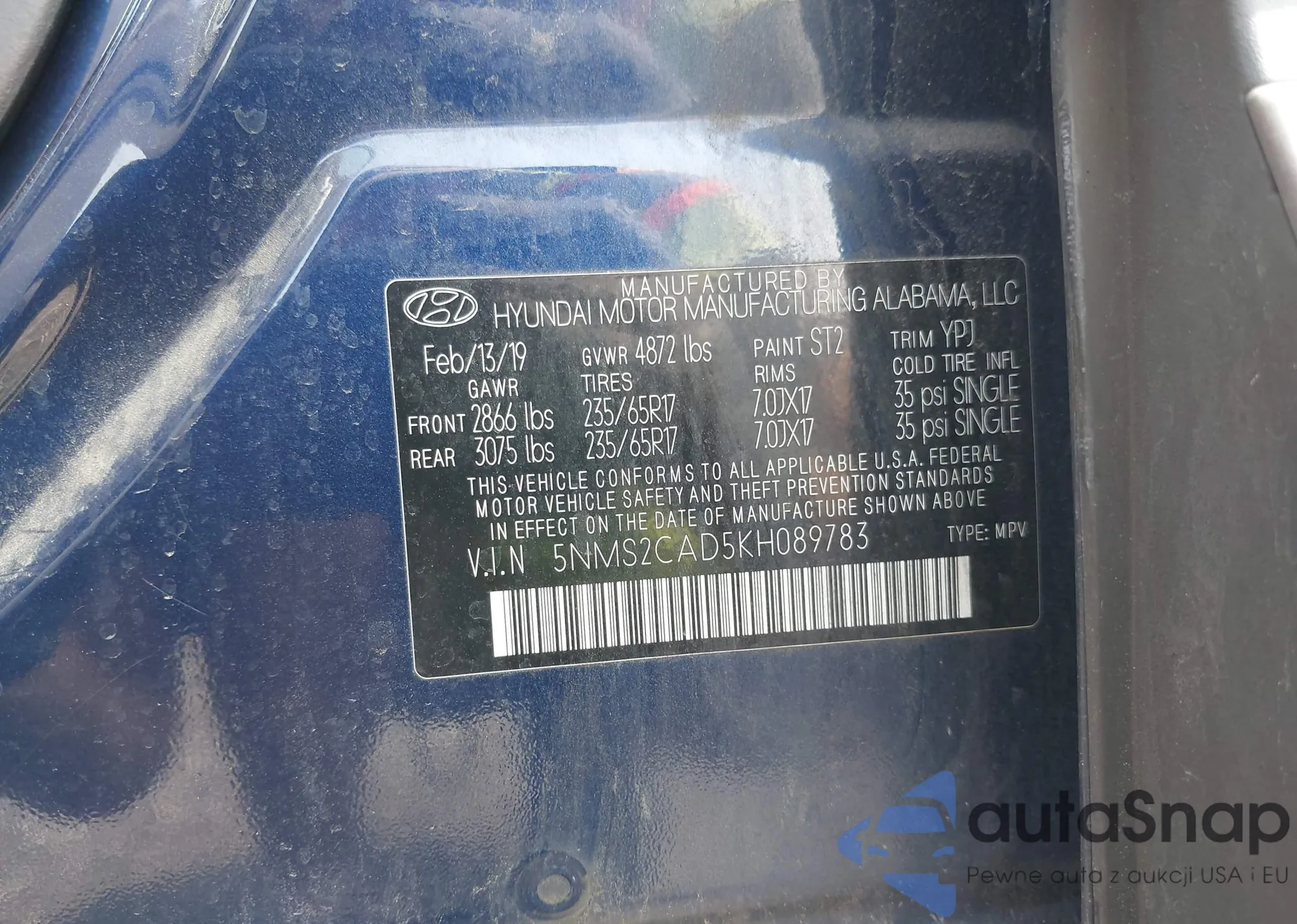 • VIN 5NMS2CAD5KH089783