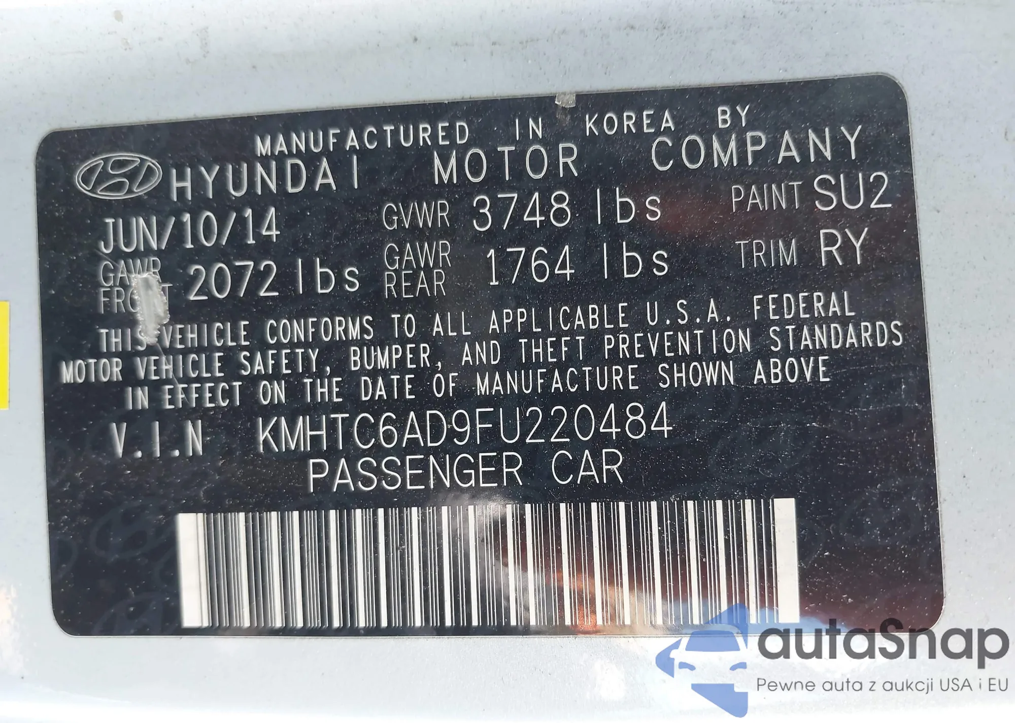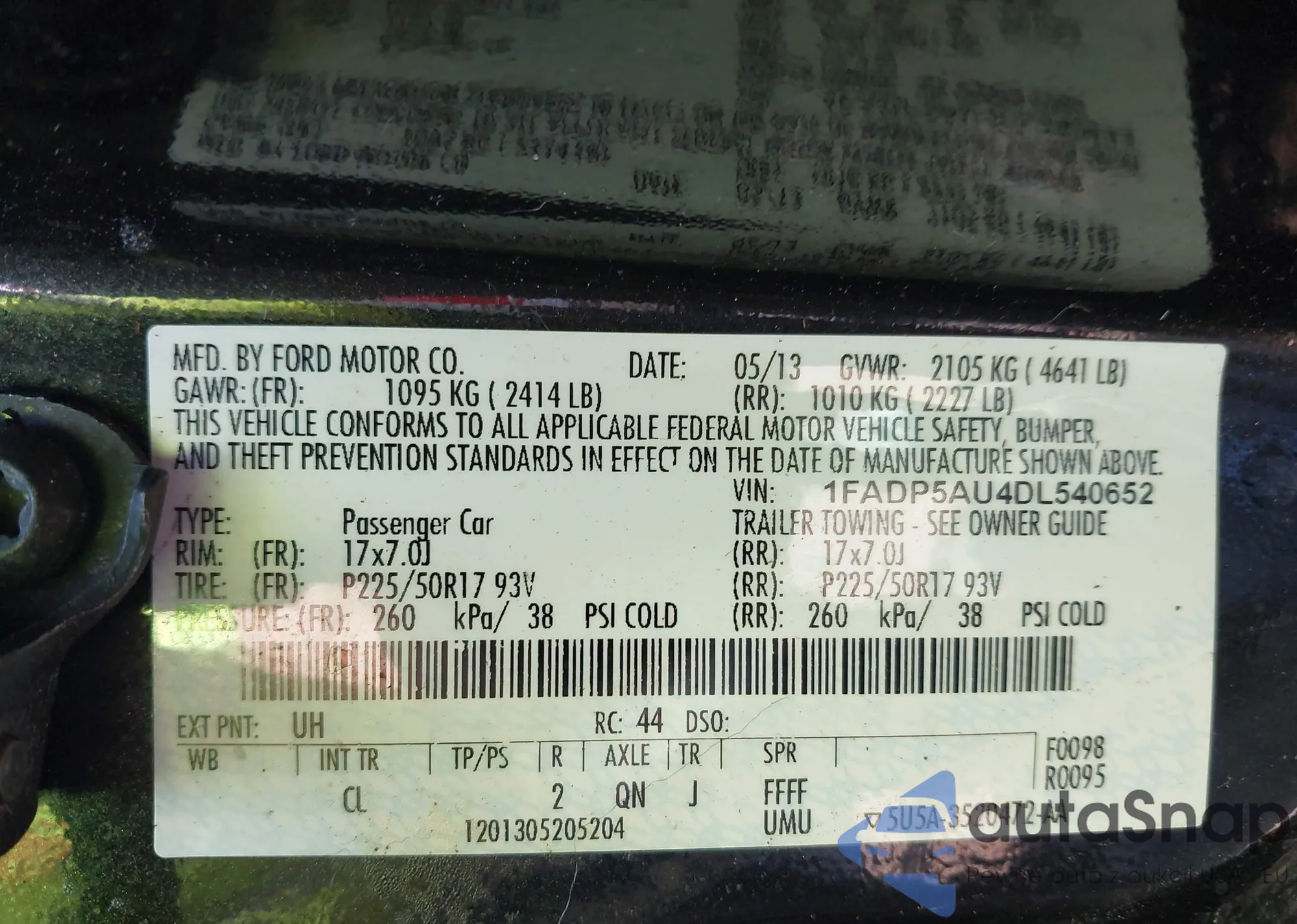 • VIN 1FADP5AU4DL540652