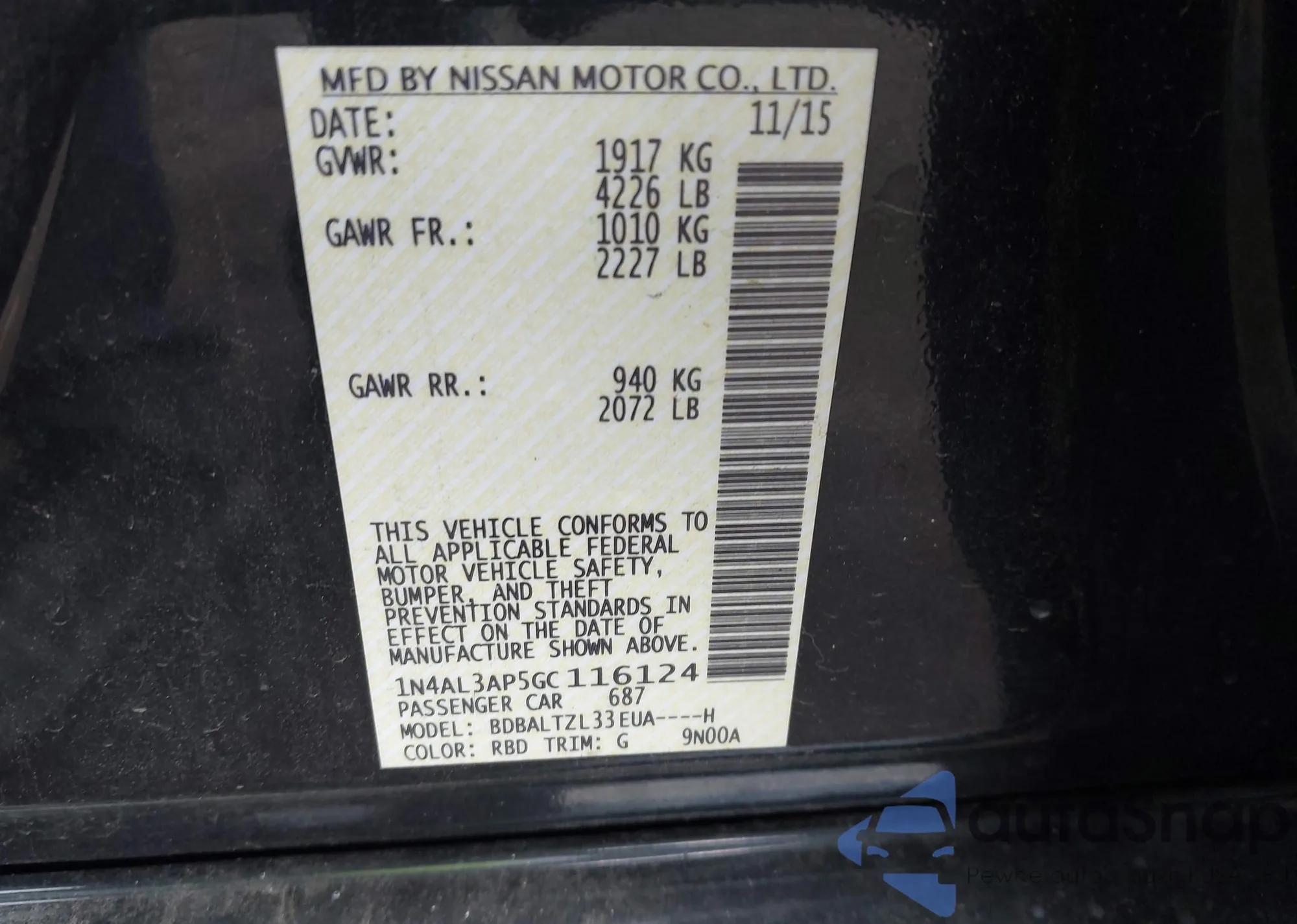 LOT: 42926045 VIN: 1N4AL3AP5GC116124