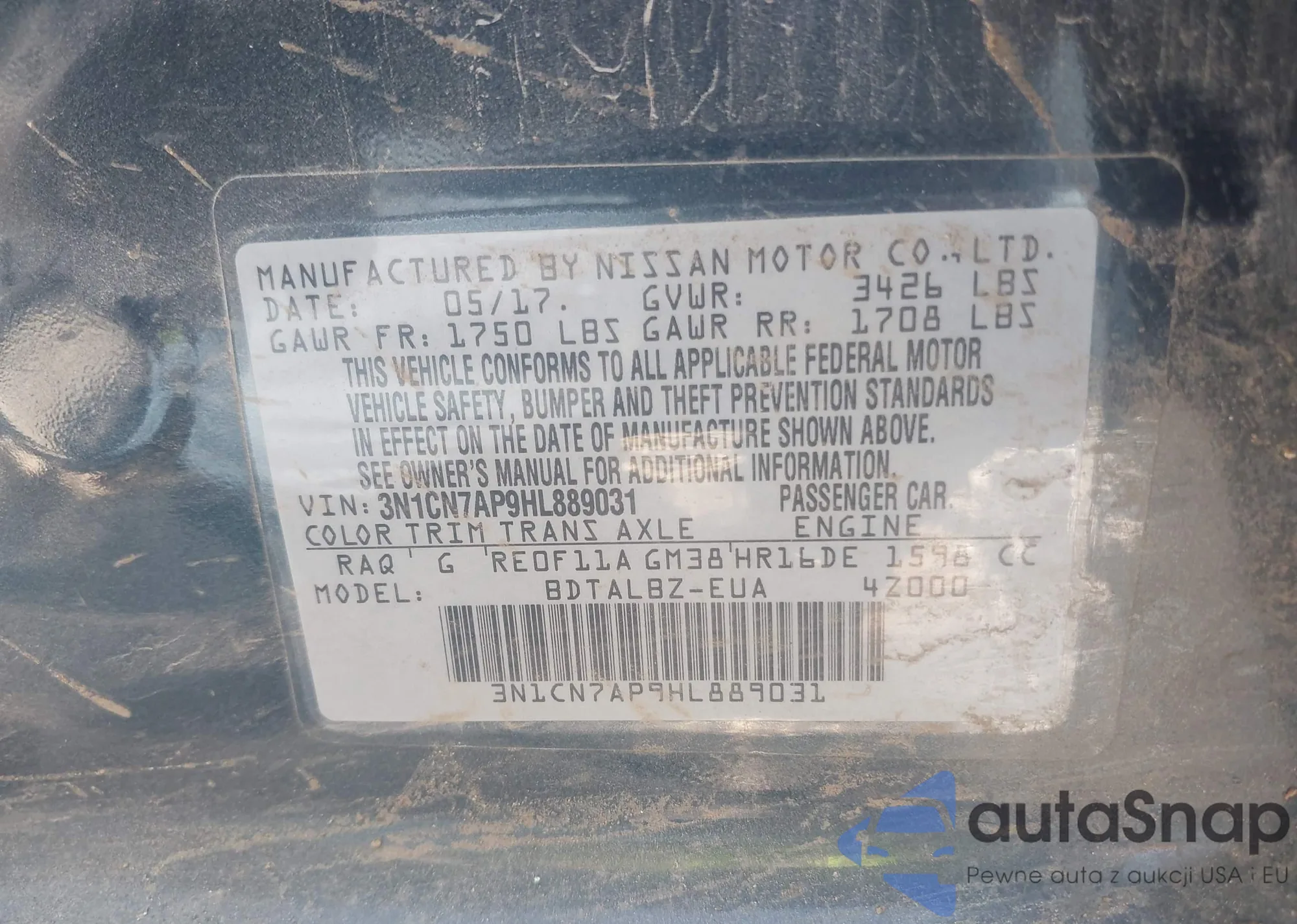 • VIN 3N1CN7AP9HL889031