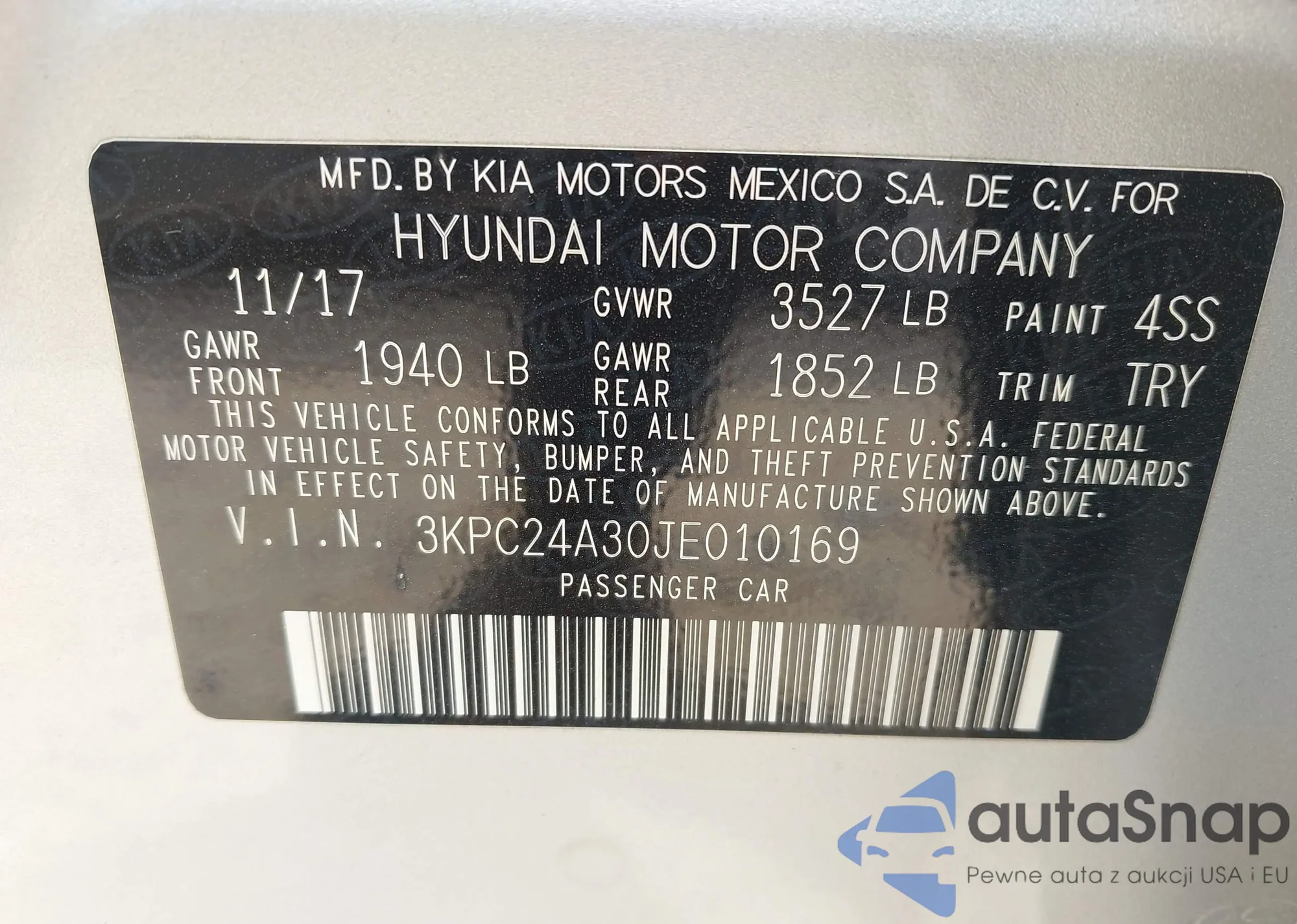 LOT: 42907332 VIN: 1G1105S36HU131052
