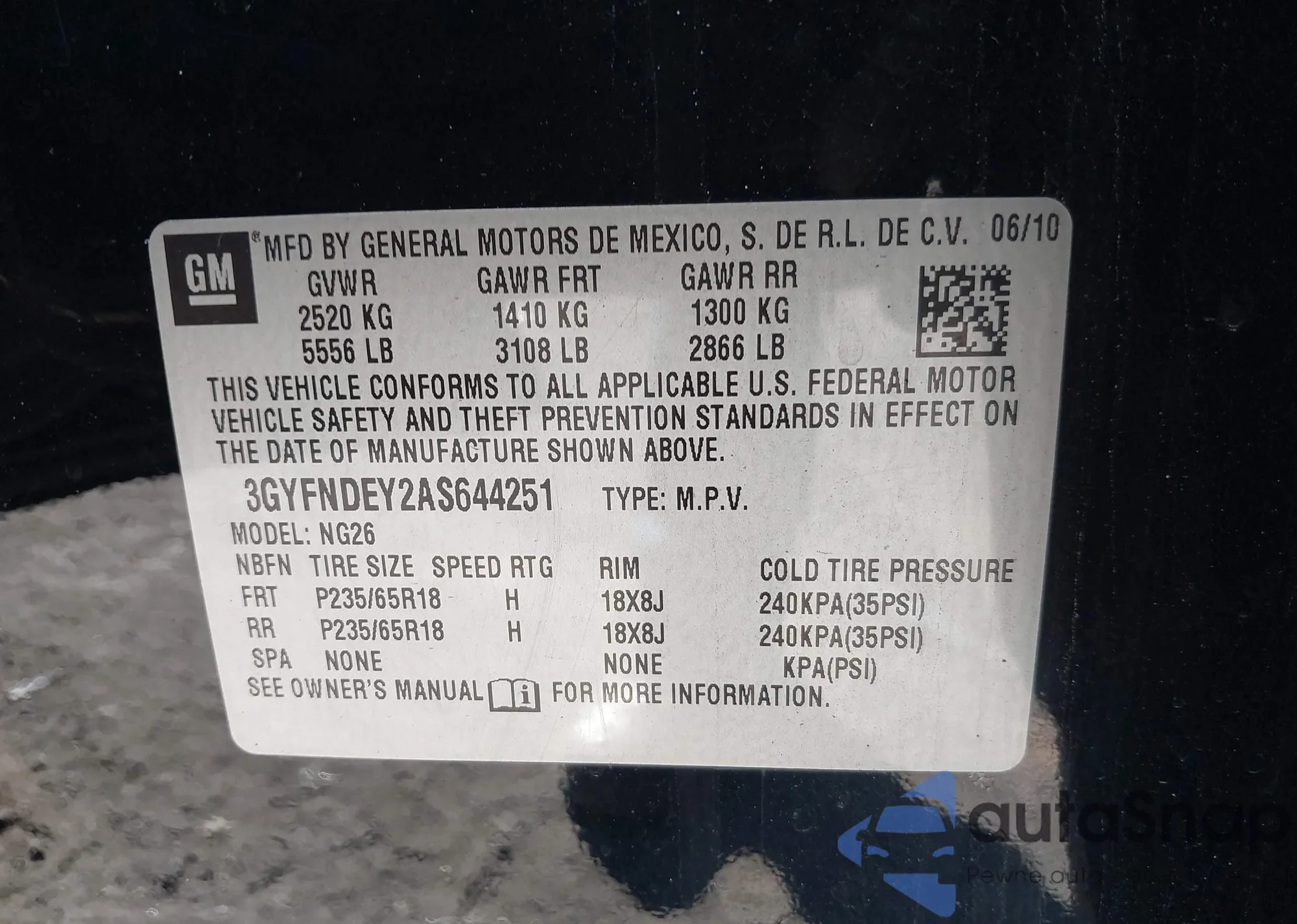 • VIN 3GYFNDEY2AS644251