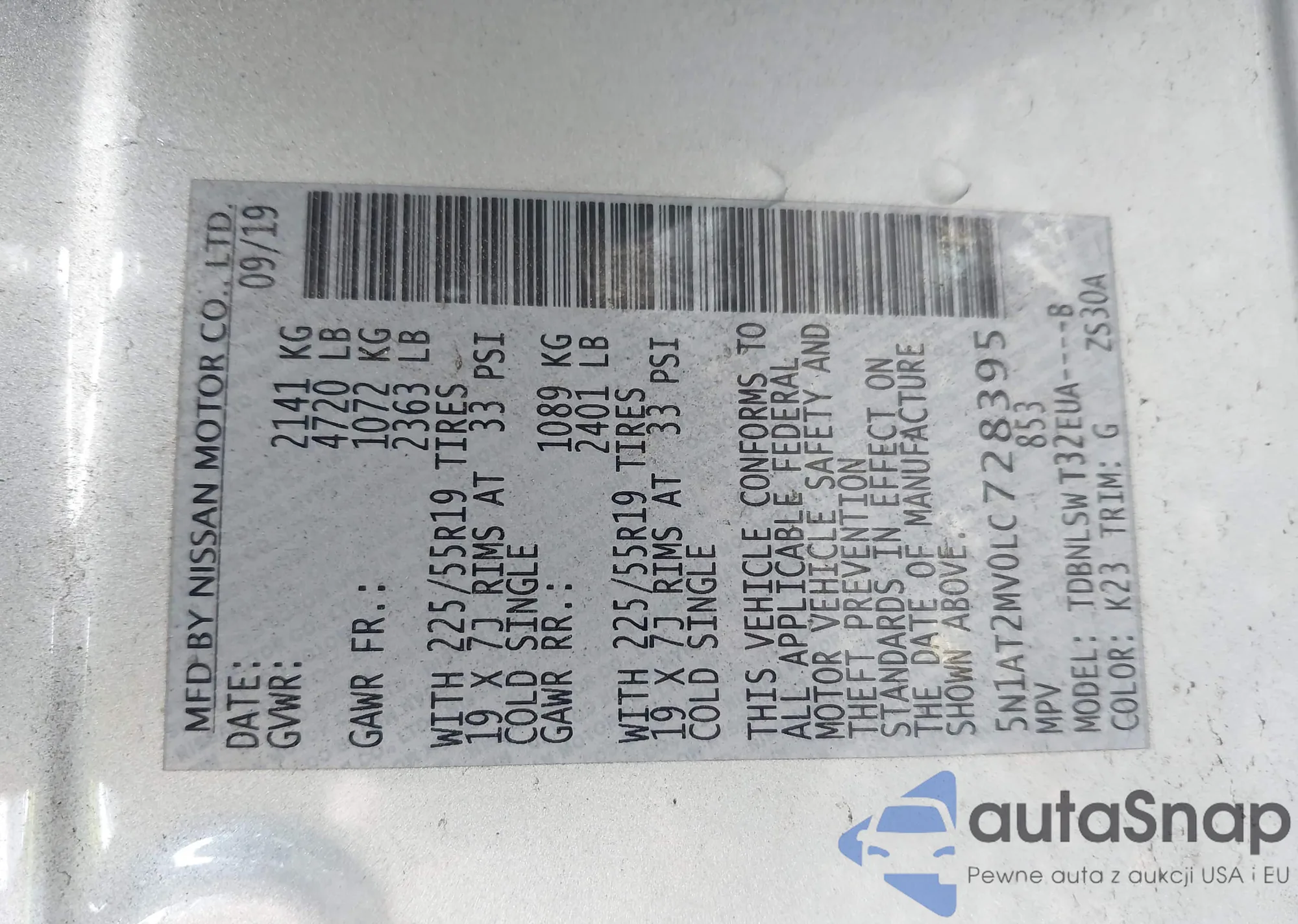 LOT: 43084804 VIN: 5N1BT3AB2PC915602