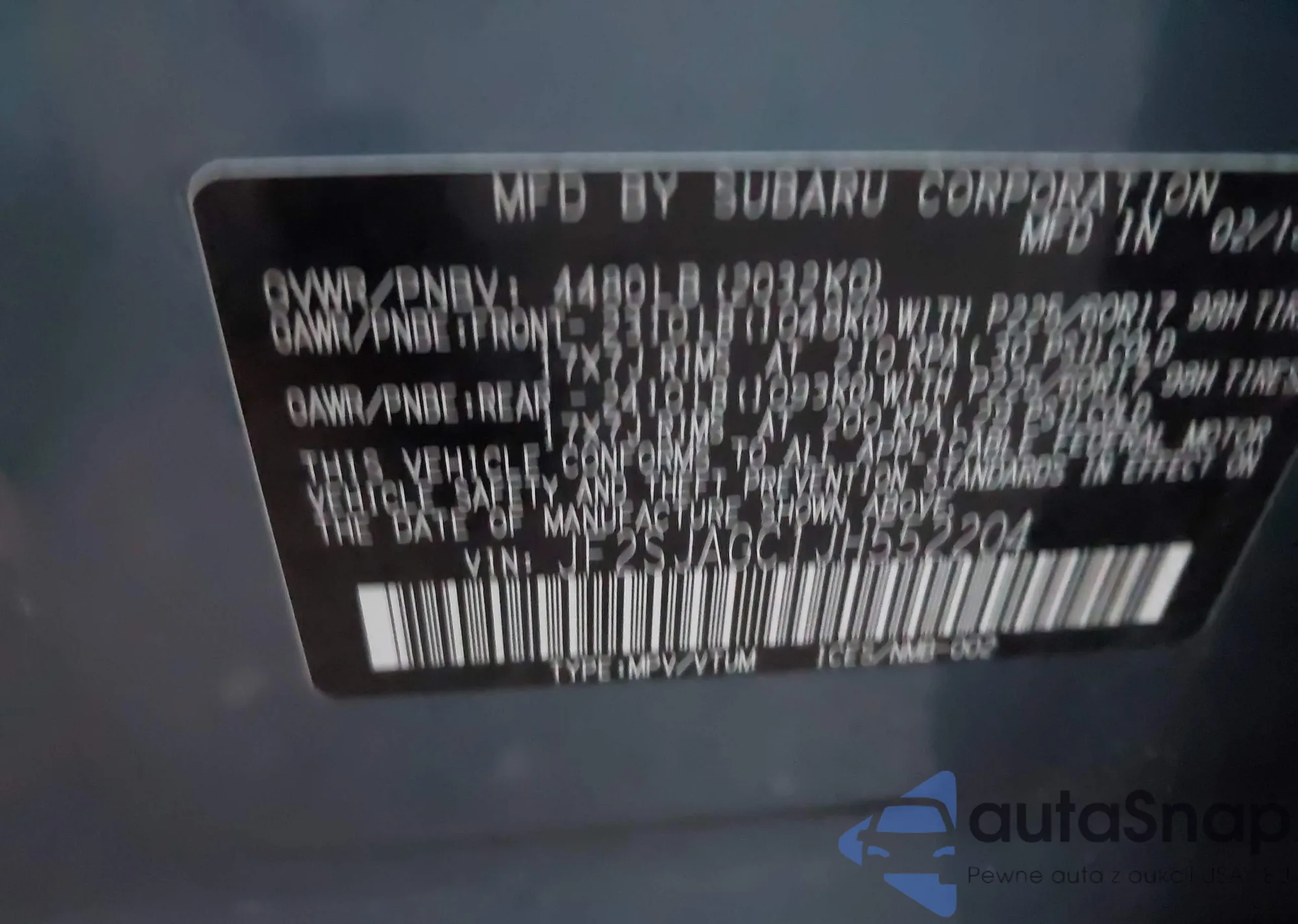 • VIN JF2SJAGC1JH552204
