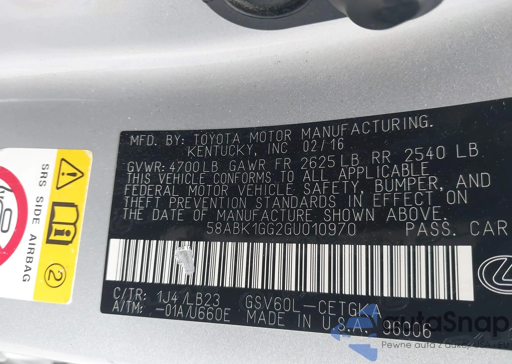 • VIN 58ABK1GG2GU010970