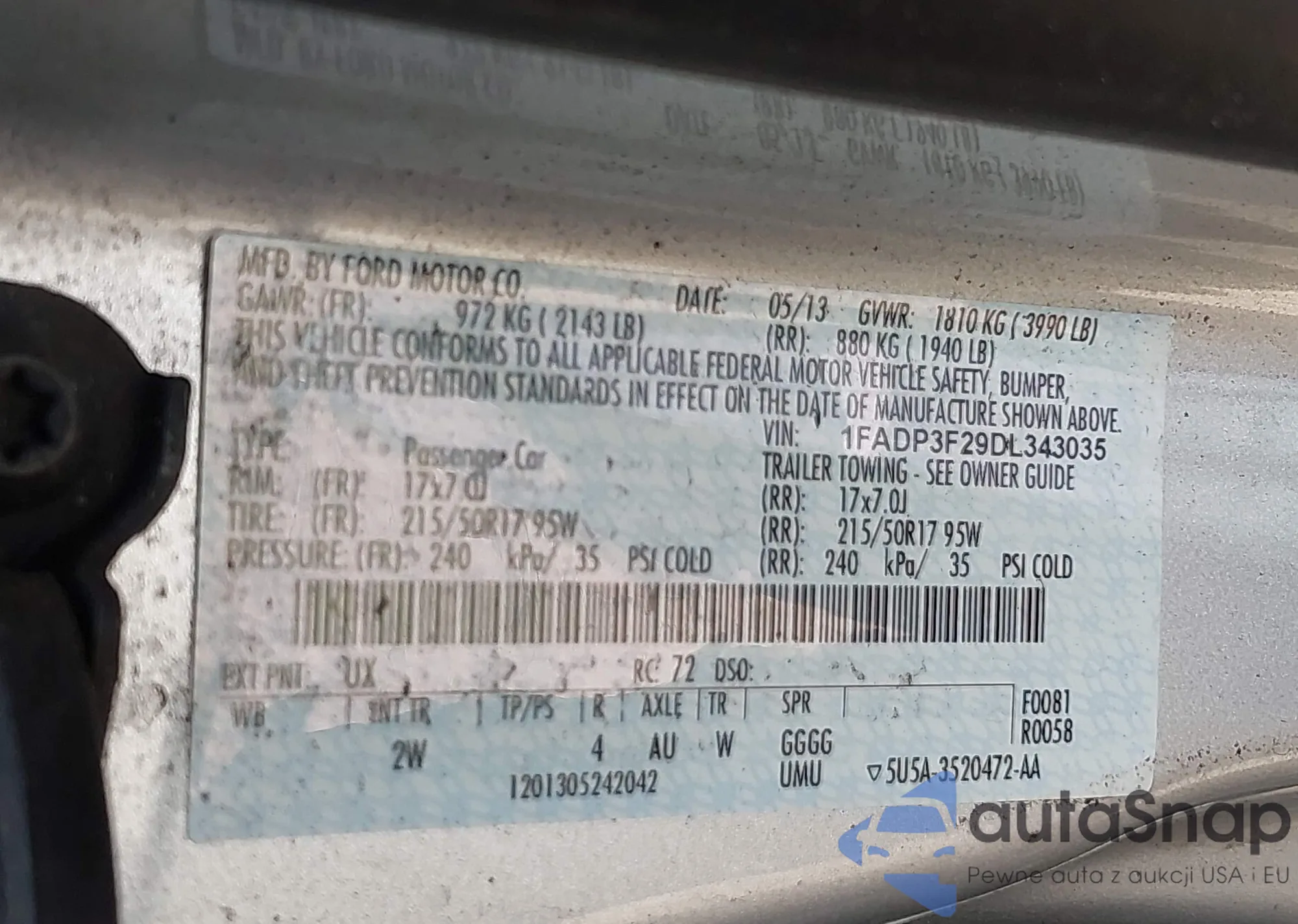 LOT: 43153638 VIN: 5XYPG4A38HG271758