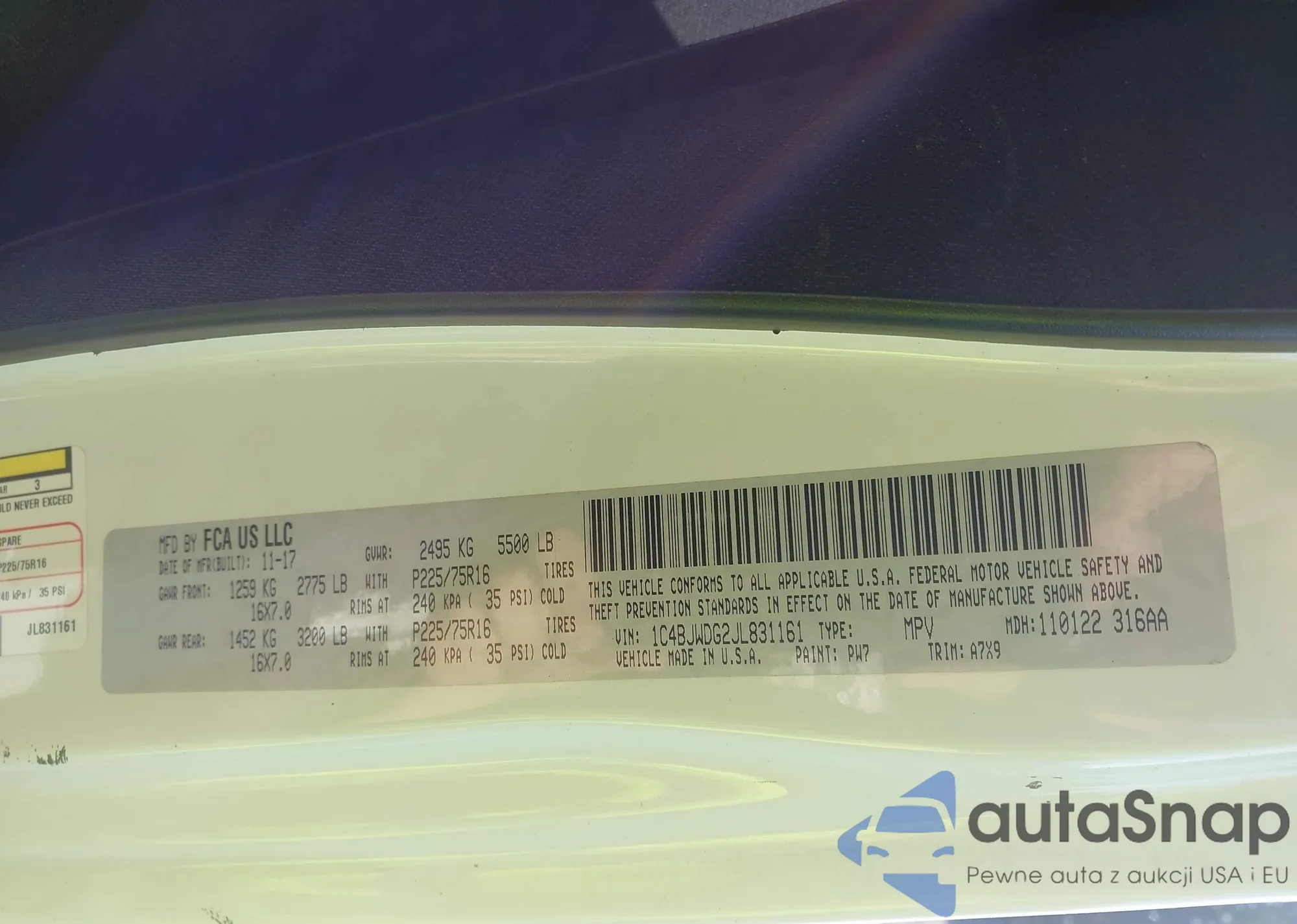 LOT: 42979366 VIN: 1V2LR2CA9JC520201