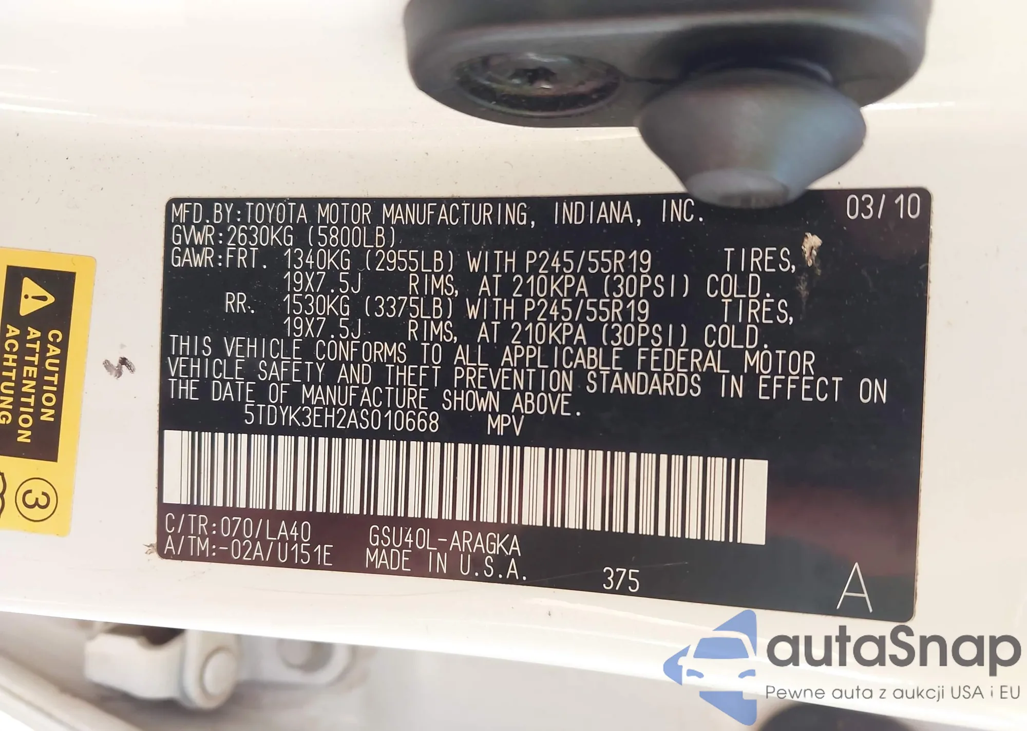 • VIN 5TDYK3EH2AS010668