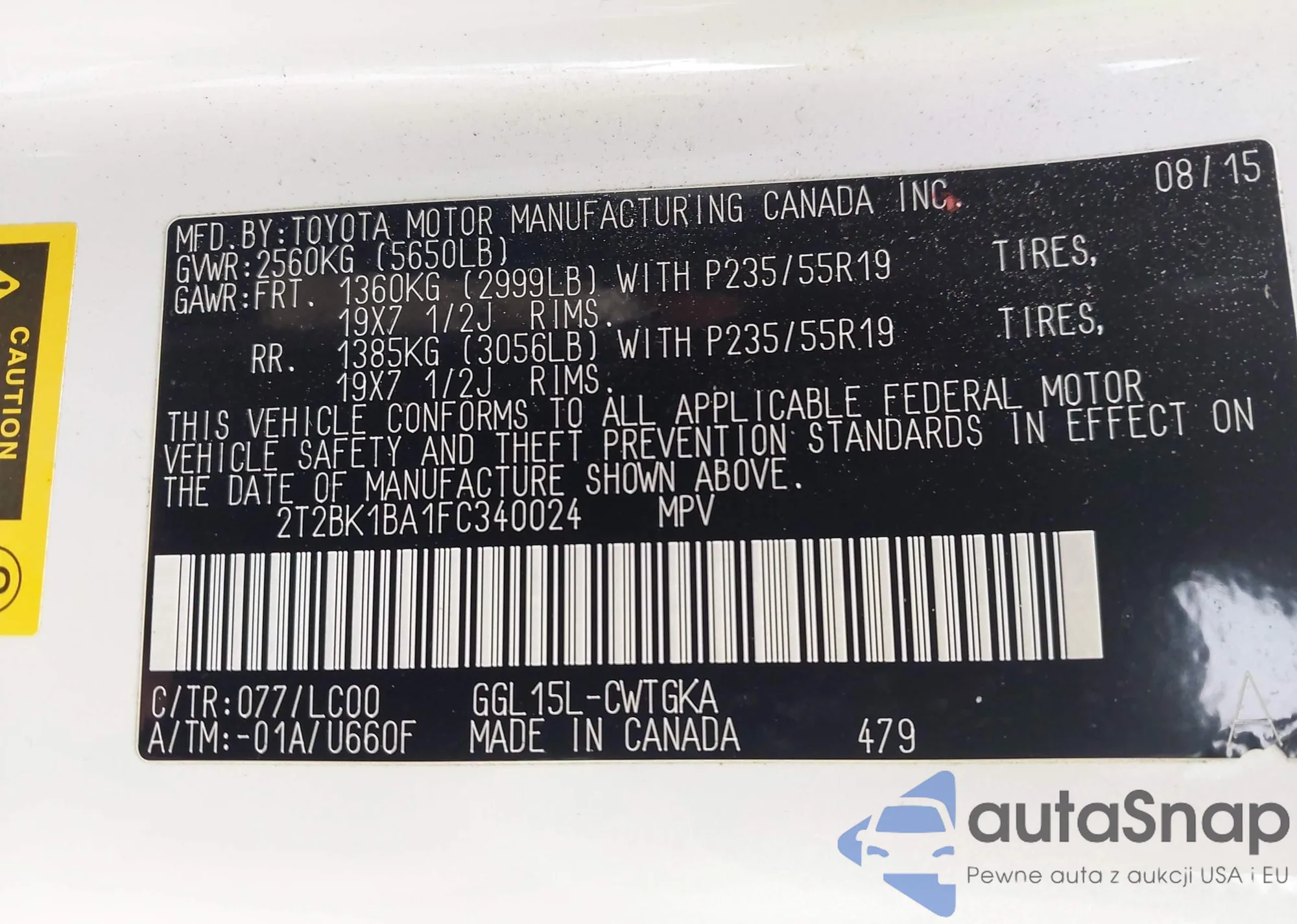 • VIN 2T2BK1BA1FC340024