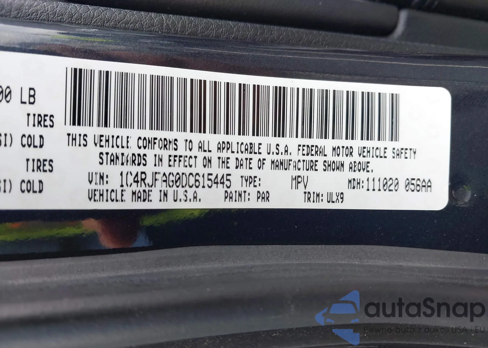 • VIN 1C4RJFAG0DC615445