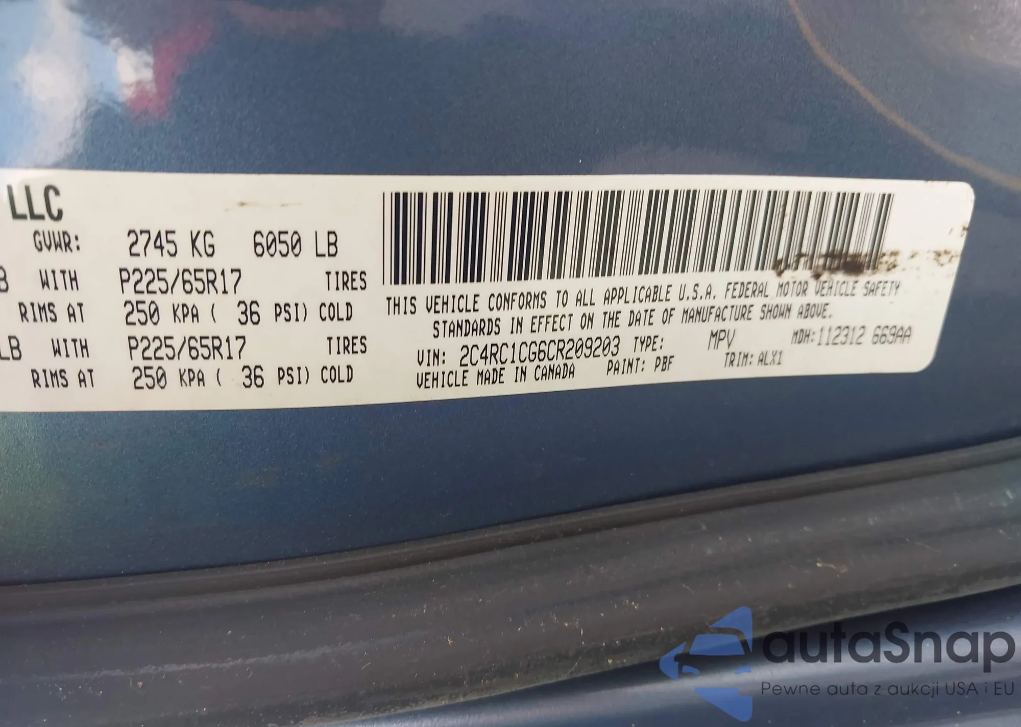 • VIN 2C4RC1CG6CR209203