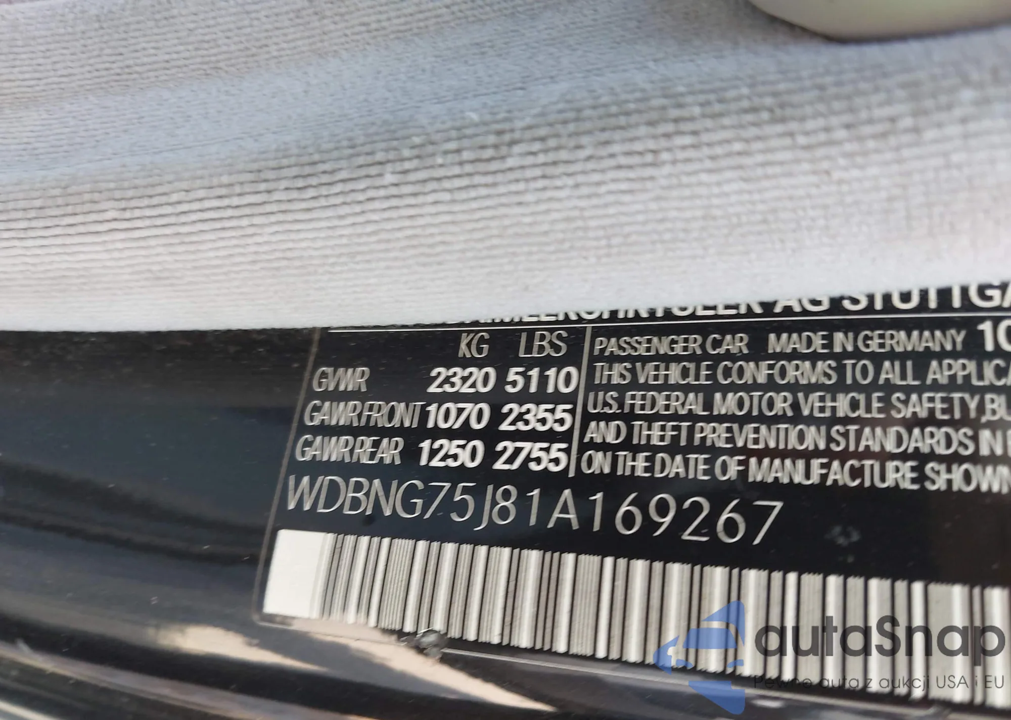 • VIN WDBNG75J81A169267