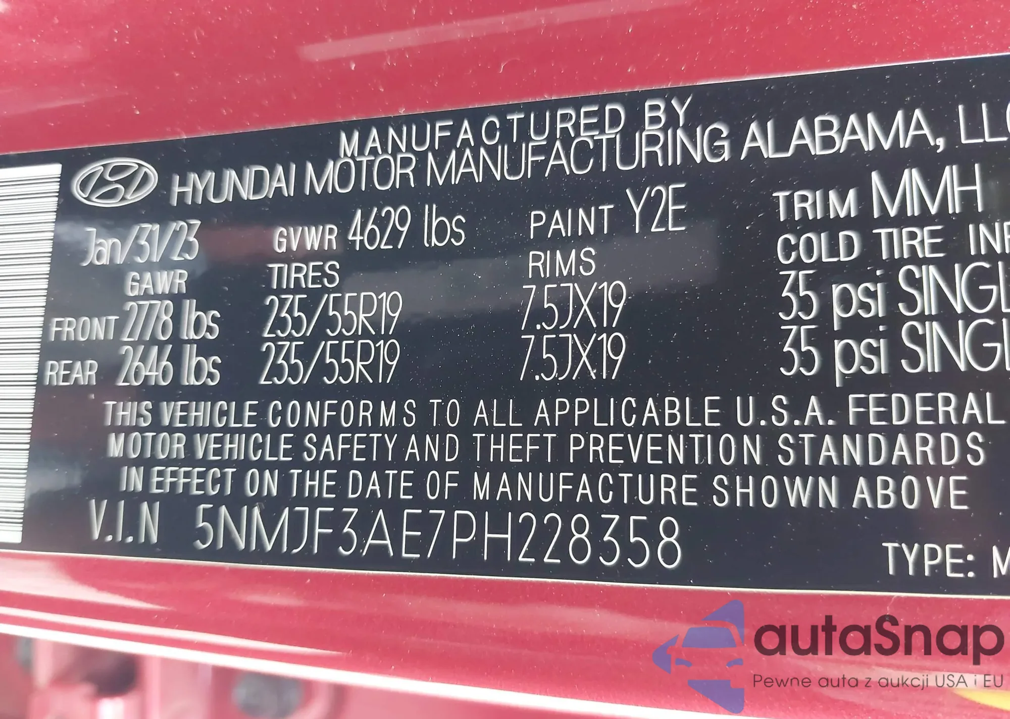 • VIN 5NMJF3AE7PH228358