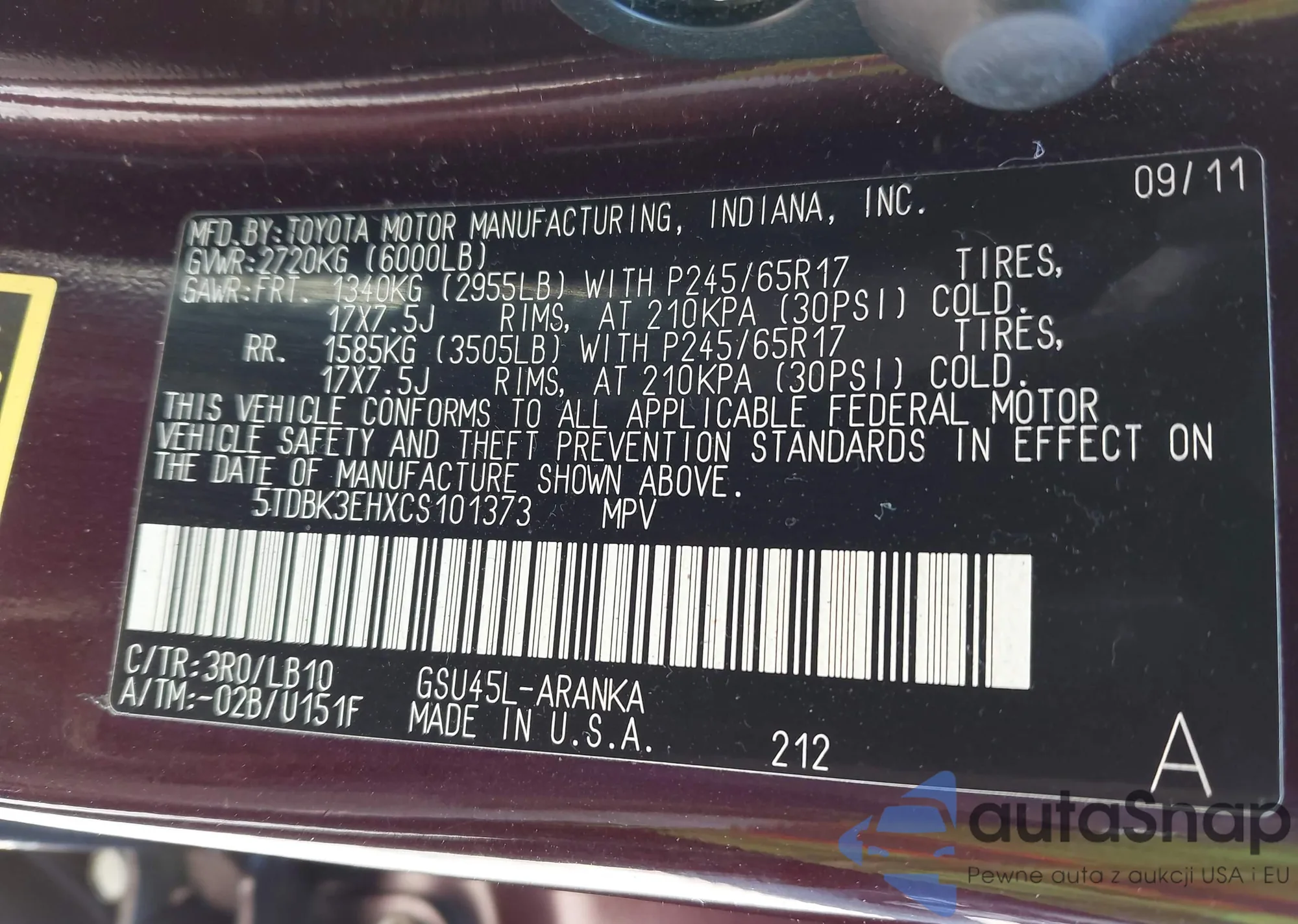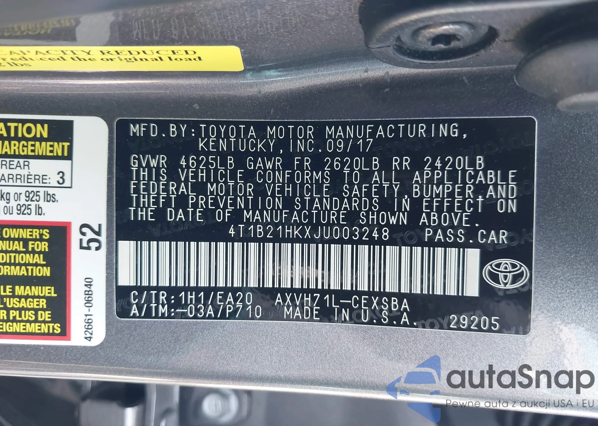 • VIN 4T1B21HKXJU003248